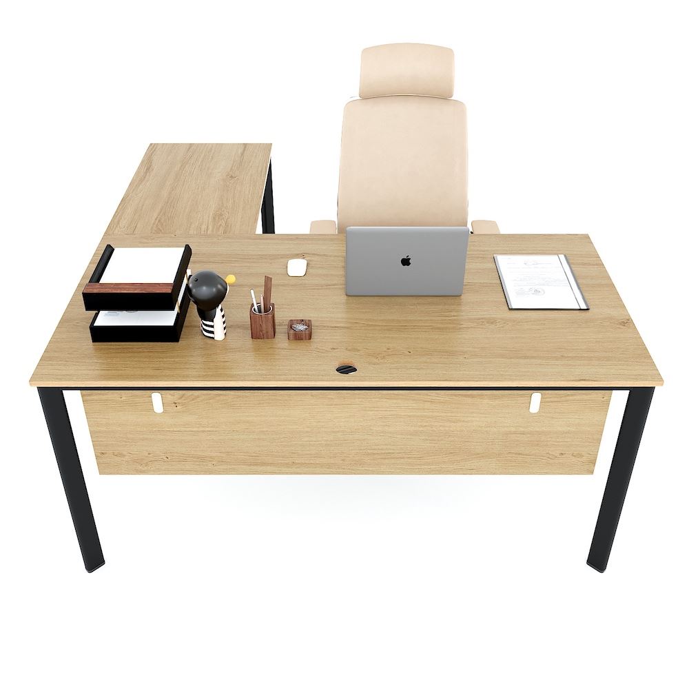 Bàn giám đốc chữ L gỗ Plywood chân sắt Oval HBOV043 với mặt bàn gỗ Plywood cốt gỗ tự nhiên bề mặt phủ melamin vân sồi đẹp mắt, bề mặt bàn được xử lý chống thấm nước và cong vênh, màu gỗ tự nhiên đẹp mắt mang đến sự thân thiện, gần gũi cho không gian làm việc của bạn. Kết hợp với mặt gỗ Plywood là hệ khung chân sắt Oval cơ cấu lắp ráp ngàm thông minh, tiện lợi nhưng vẫn đảm bảo độ chắc chắn, bề mặt sắt phủ lớp sơn tĩnh điện chất lượng cao bền bỉ theo thời gian.