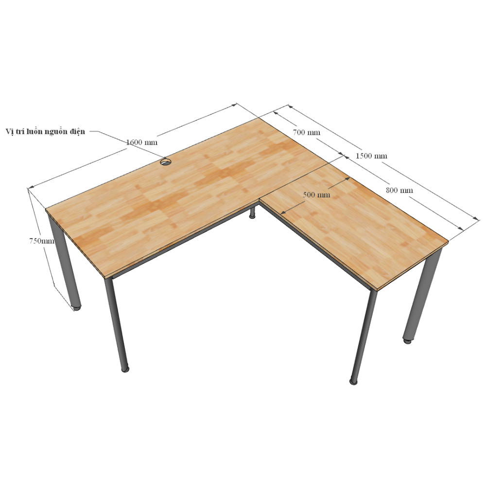 Kích thước chi tiết bàn làm việc góc L 160x150cm