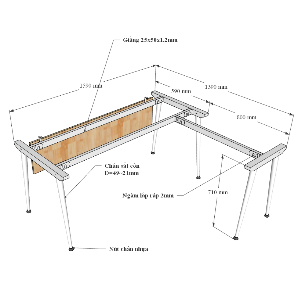 Chân bàn có giăng bàn sắt 25x50mm lắp ráp đỡ mặt bàn chắc chắn