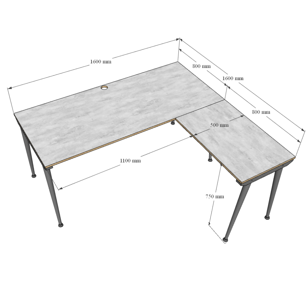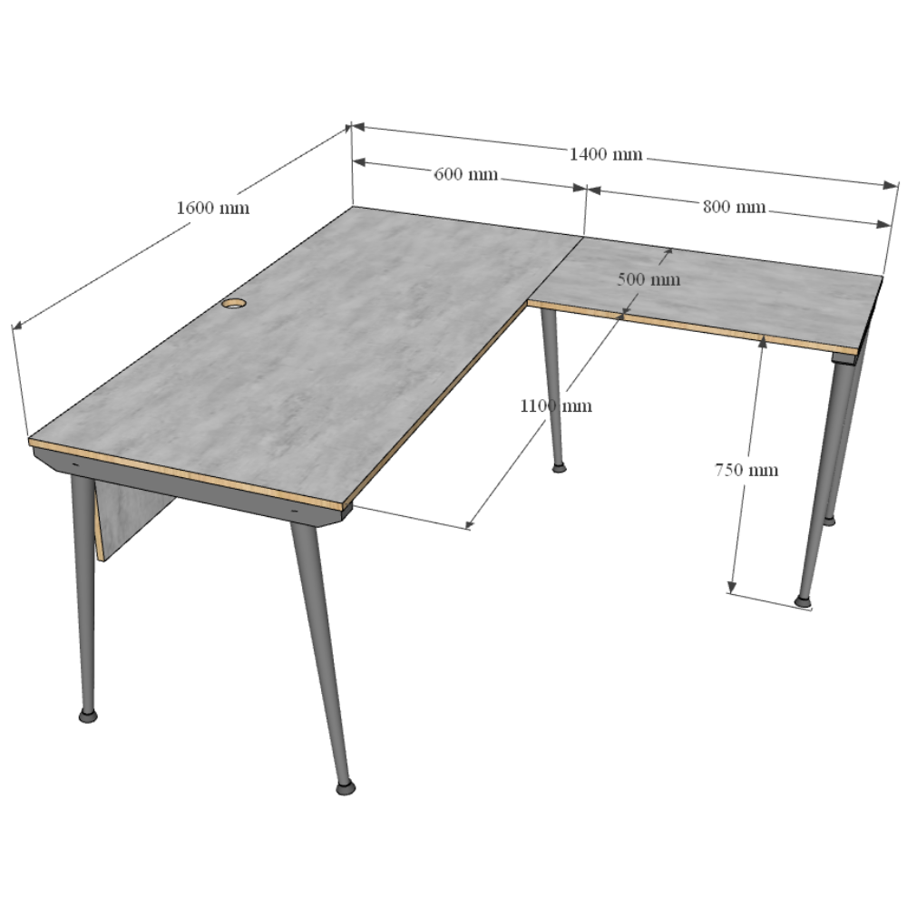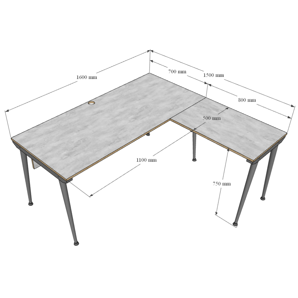 Kích thước chi tiết bàn làm việc góc L 160x150cm