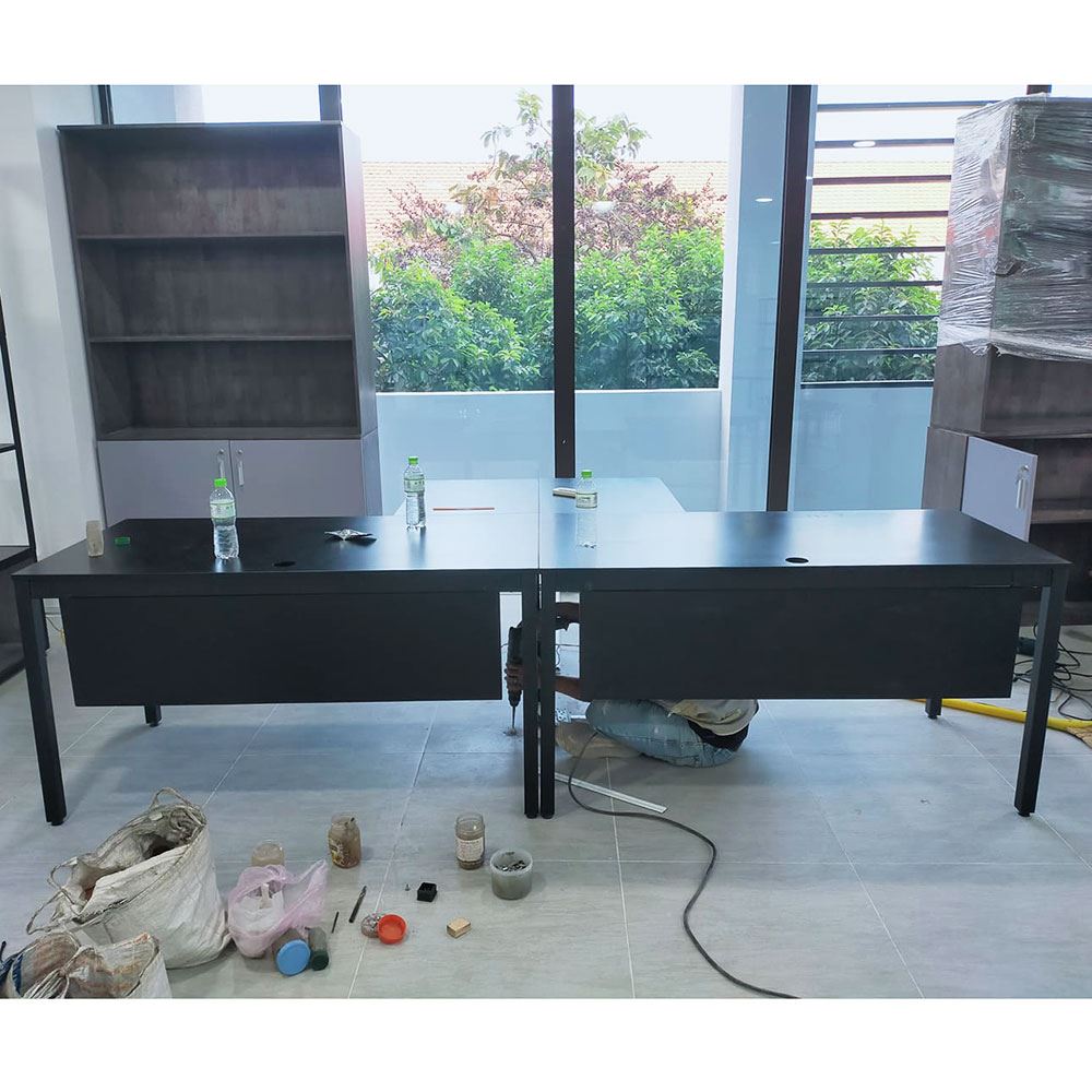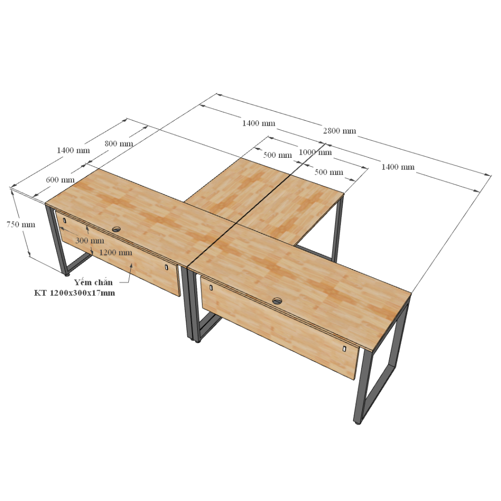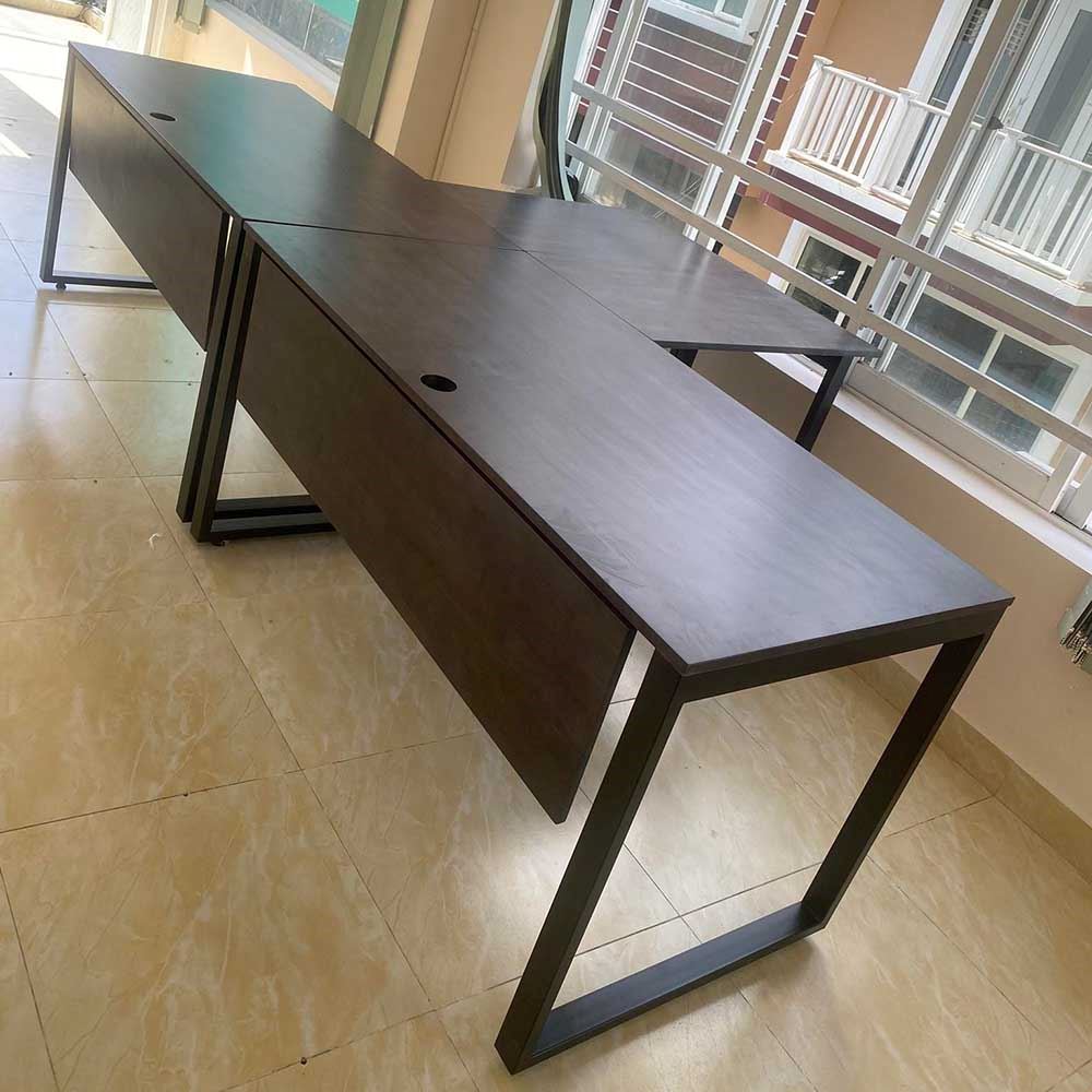 HBRT027 - Bàn cụm 2 góc L nối tiếp Rectang Concept gồm 2 bàn góc chữ L ghép lại theo kiểu nối tiếp song song hệ chân Rectang concept lắp ráp ngàm sơn tĩnh điện chất lượng cao kết hợp với mặt bàn gỗ cao su tiêu chuẩn AA dày 17mm sơn Pu hoàn thiện hơn hẳn các loại gỗ công nghiệp khác, không sợ nước và không bị bong tróc với 5 màu sắc lựa chọn, Mẫu bàn cụm kích thước dài 2.8m x60cm với 2 góc chữ L sát nhau mỗi góc 80x50cm kiểu dáng ngồi song song tách biệt giữa hai người nhưng vẫn có thể giao tiếp thuận lợi qua góc chữ L, tối ưu không gian cực tốt