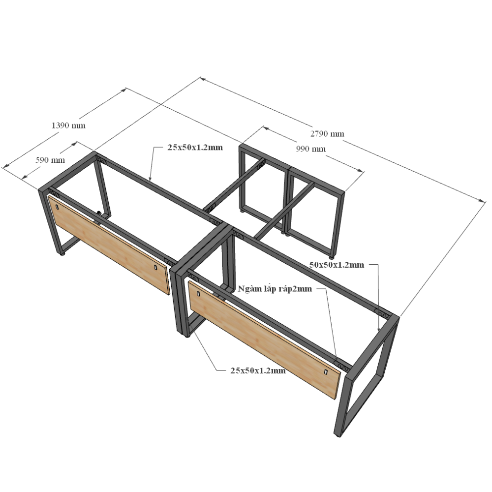 Chân bàn sử dụng sắt hộp 25x50mm và sắt hộp 50x50mm dày 1.2mm rất bền chắc thêm sơn tĩnh điện chất lượng cao cho hệ bàn cao cấp sử dụng thời gian rất dài