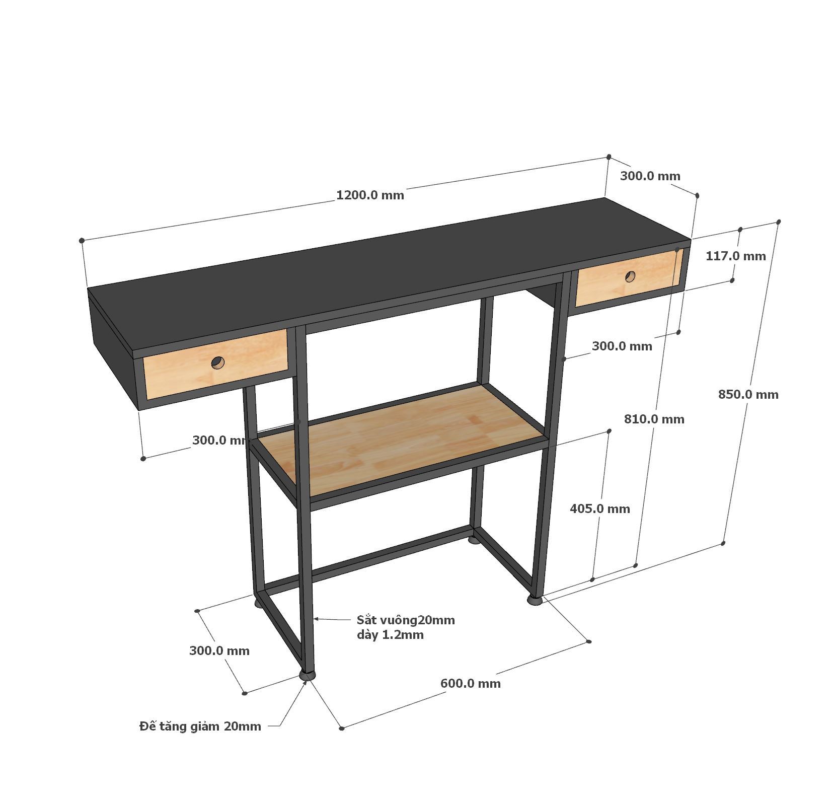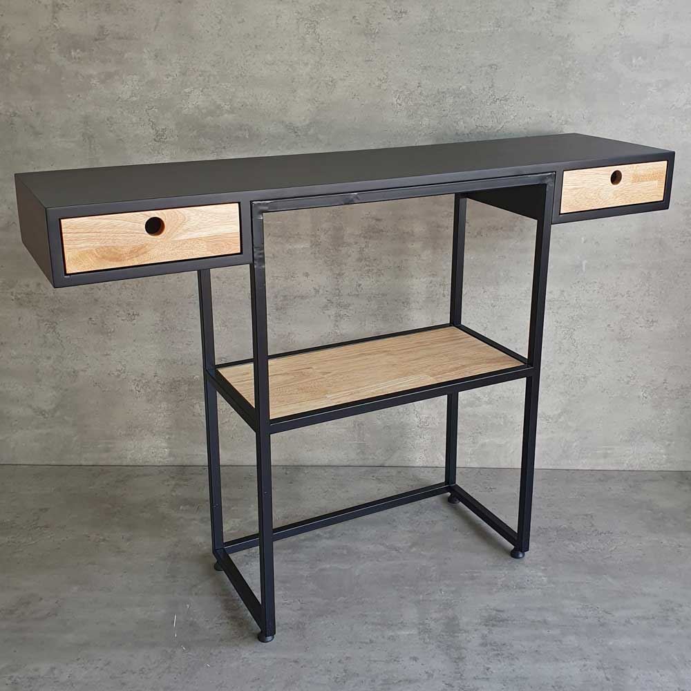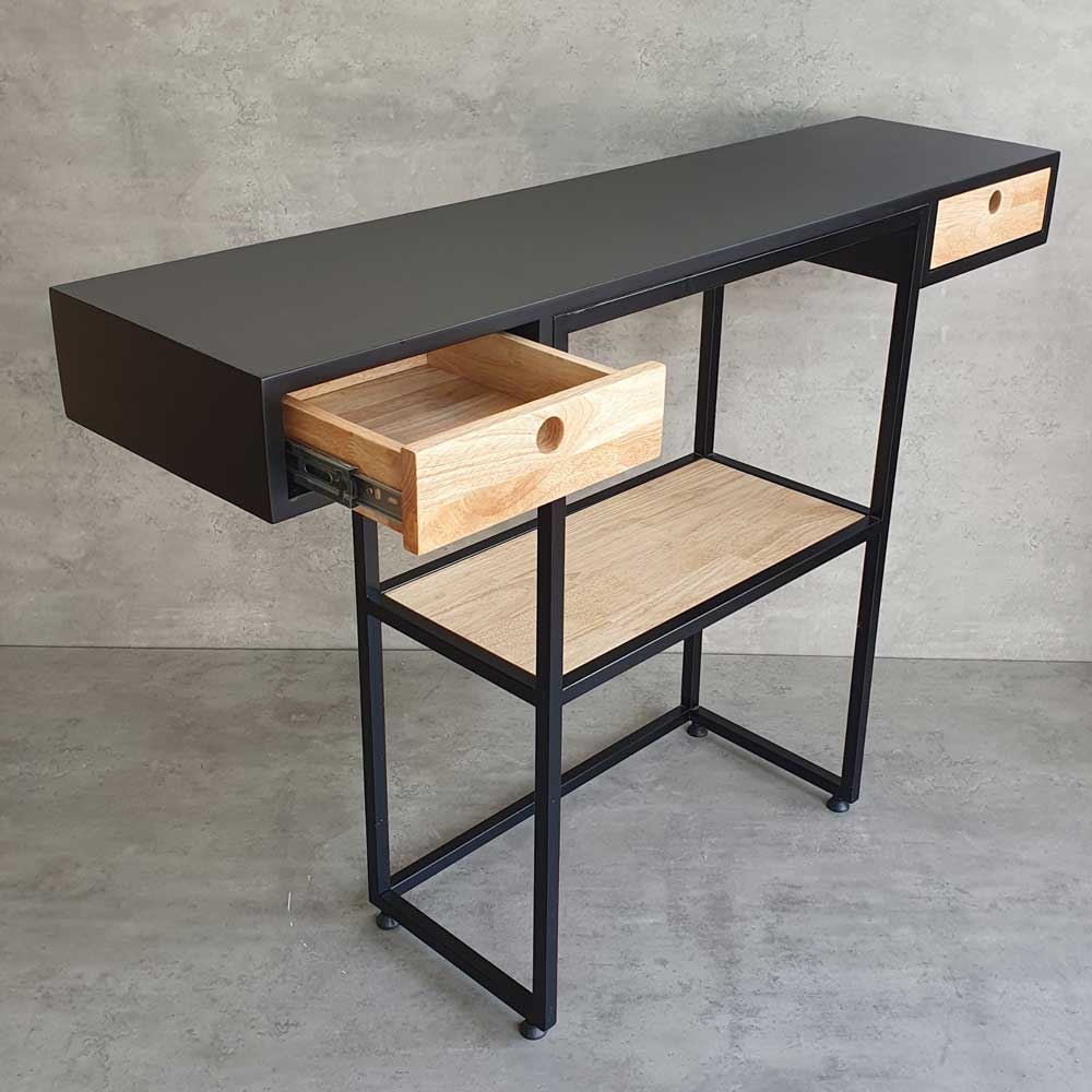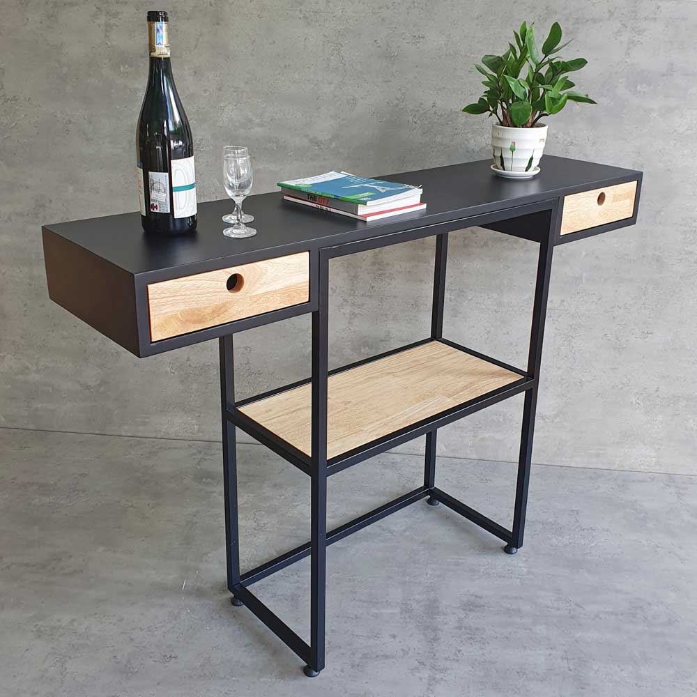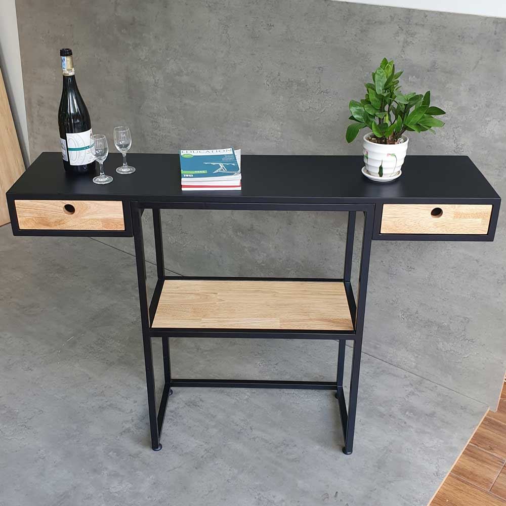 Bàn console CST057 sở hữu kiểu dáng hiện đại với phần mặt gỗ cao su sơn đen, kết hợp khung sắt sắt vuông 20x20mm mang đến sự chắc chắn, cứng cáp cho sản phẩm. Thiết kế 3 tầng kết hợp hộc kéo 2 bên giúp bạn tăng không gian trưng bày và lưu trữ các món đồ yêu thích một cách dễ dàng. Gỗ cao su tự nhiên AA, độ dày 18cm, đạt tiêu chuẩn xuất khẩu, vân gỗ đẹp mắt, hoặc bạn có thể yêu cầu màu sắc theo bảng màu HomeOffice.