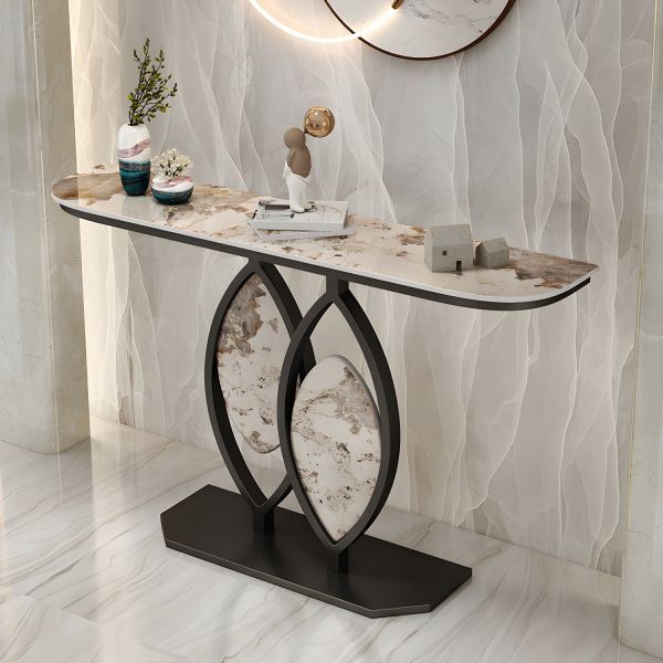 Bàn Console CST086 gây ấn tượng với kiểu dáng chân bàn hình chiếc lá đầy sáng tạo. Trên chiếc lá được ốp tấm đá ceramic tạo điểm nhấn, mang đến vẻ đẹp độc đáo và sang trọng cho sản phẩm. Bàn Console không chỉ là món đồ nội thất tiện dụng mà còn là điểm nhấn nghệ thuật góp phần tô điểm cho không gian.