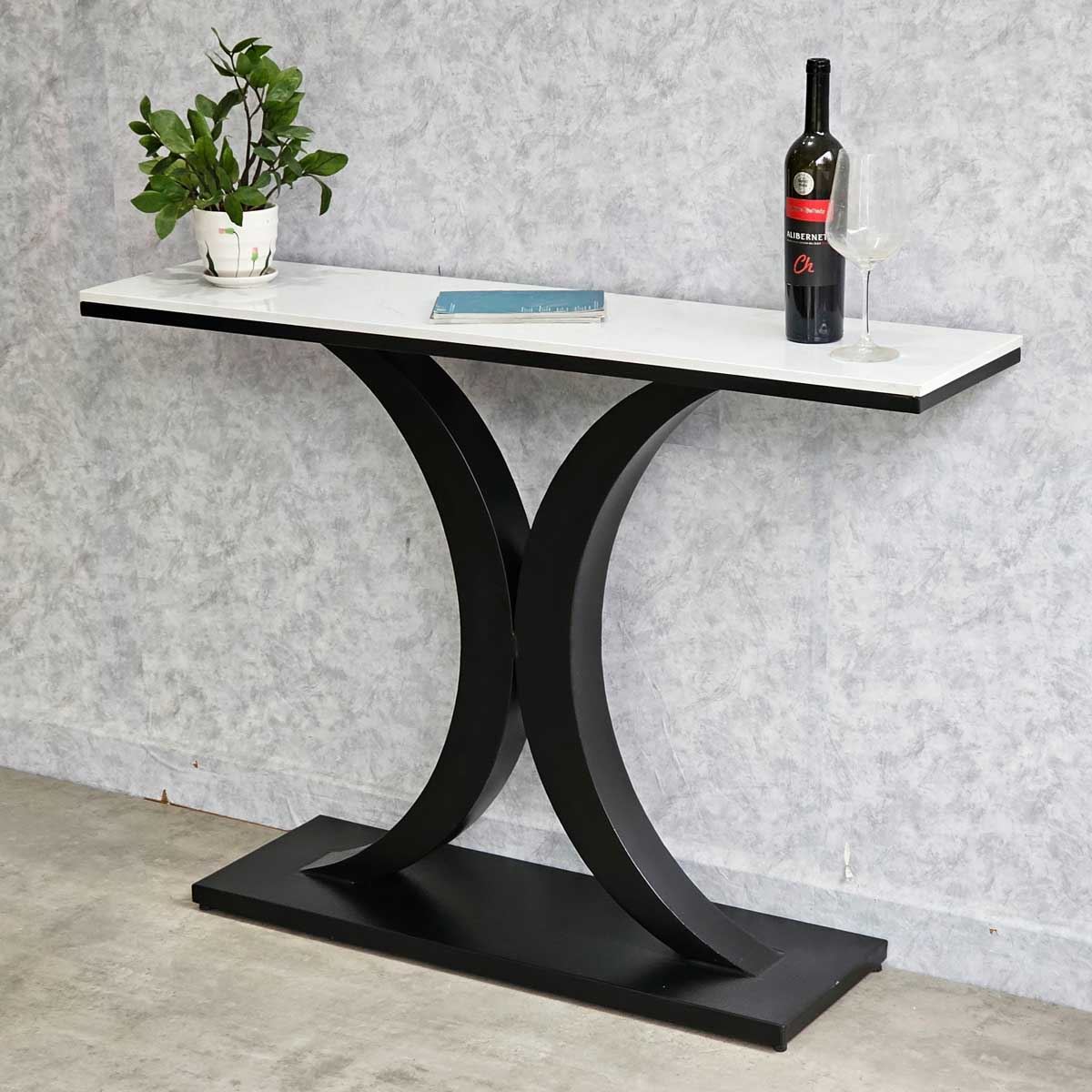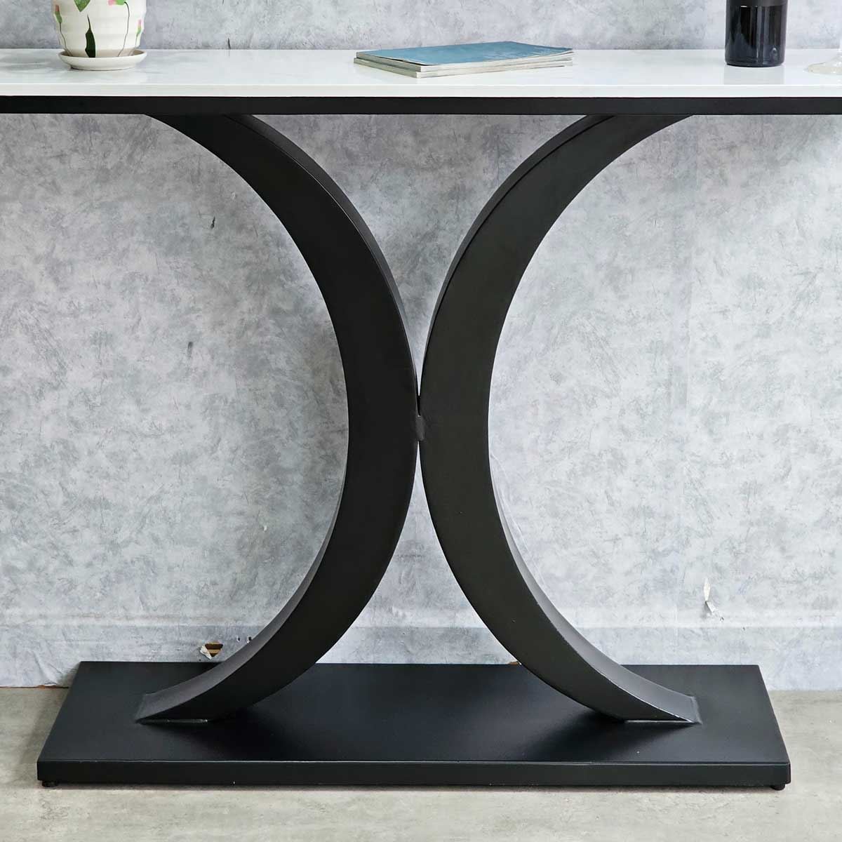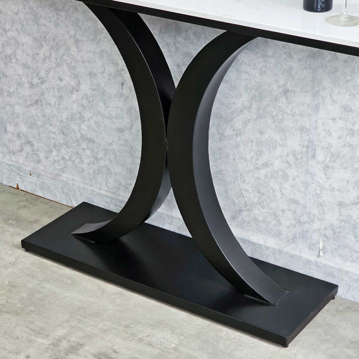 Bàn console, bàn trang trí mặt đá CST034 sở hữu kiểu dáng bắt mắt, gây ấn tượng từ cái nhìn đầu tiên nhờ khung chân sắt được thiết kế cầu kỳ và đẹp mắt. Bàn consle giúp nâng giá trị thẩm mỹ cho không gian được khách hàng ưa chuộng và sử dụng rộng rãi trong không gian nhà ở như hành lang, phòng khách, phòng làm việc hay bàn trang trí tại resort, nhà hàng... Mặt bàn được làm từ mặt đá trắng cao cấp vừa có tính thẩm mỹ vừa chịu lực tốt, hạn chế tối đa vết trầy xước kết hợp khung chân sắt được gia công cầu kỳ và tỉ mỉ, bề mặt sắt phủ lớp sơn tĩnh điện chất lượng cao bền bỉ theo thời gian.