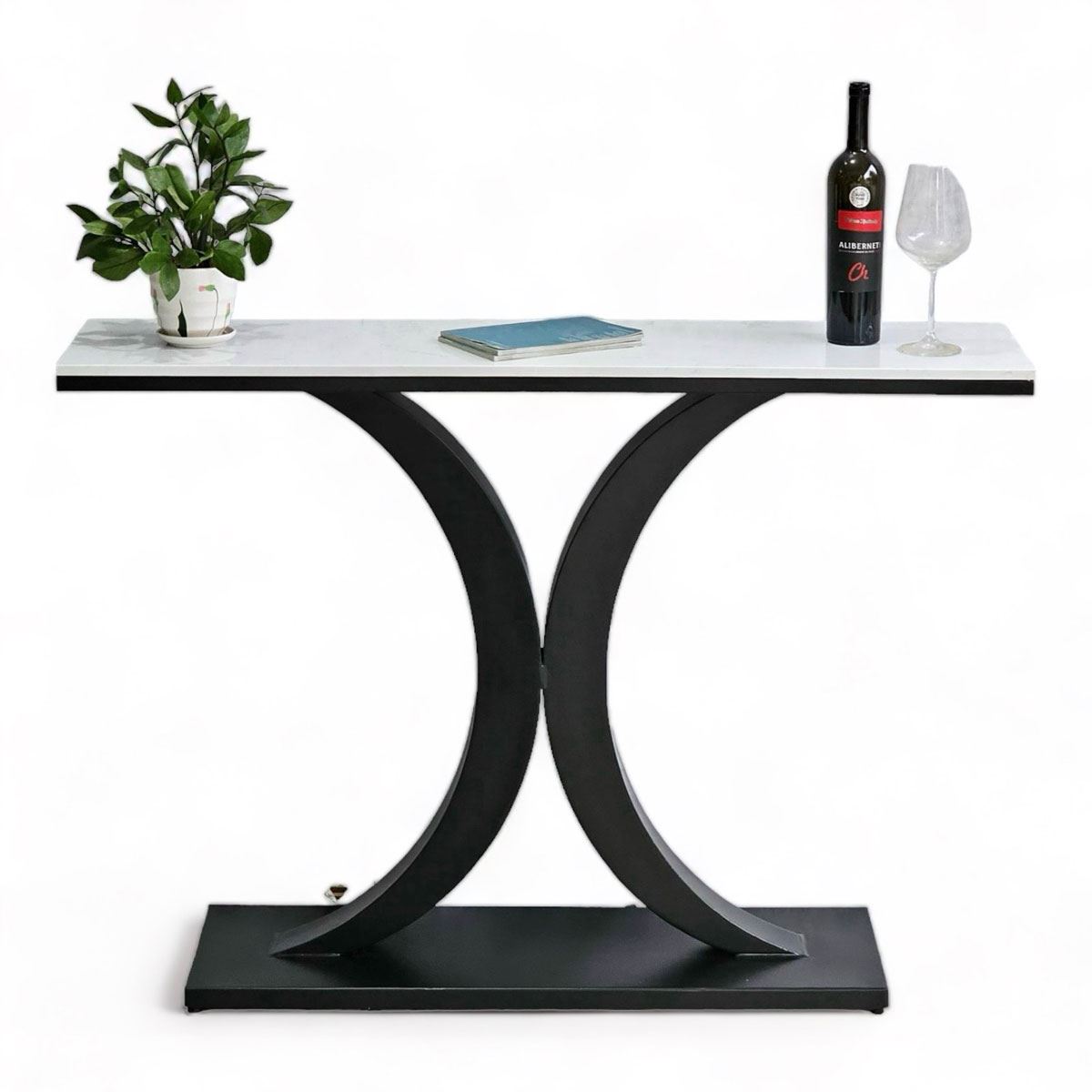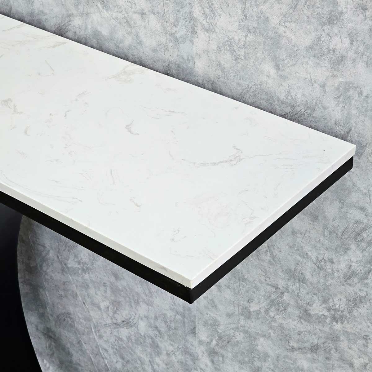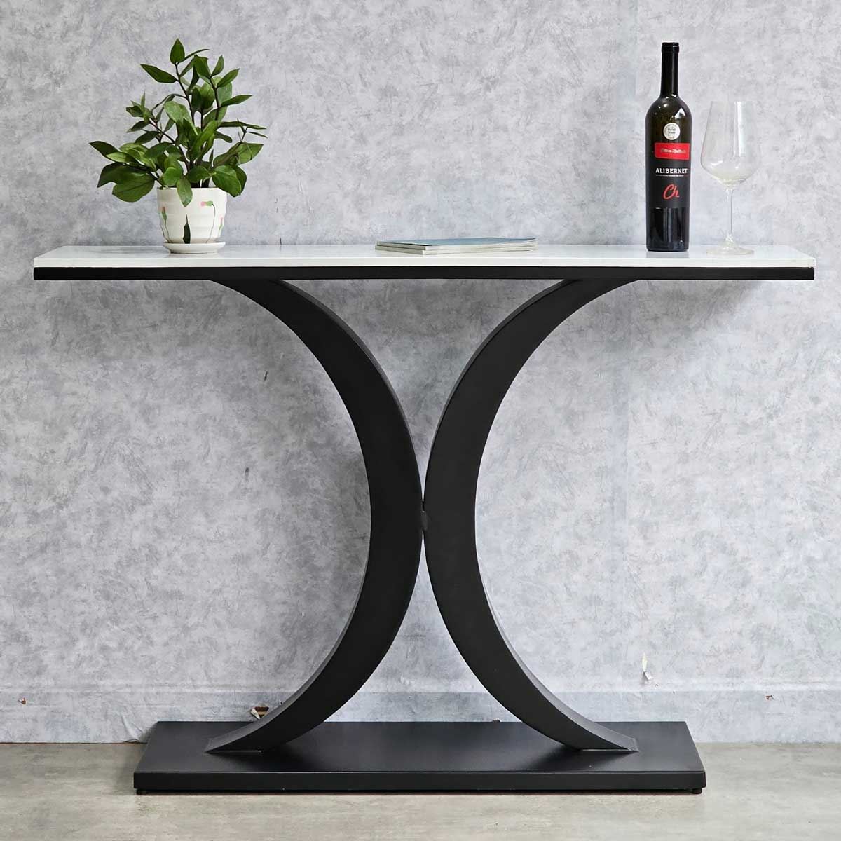 Bàn console, bàn trang trí mặt đá CST034 sở hữu kiểu dáng bắt mắt, gây ấn tượng từ cái nhìn đầu tiên nhờ khung chân sắt được thiết kế cầu kỳ và đẹp mắt. Bàn consle giúp nâng giá trị thẩm mỹ cho không gian được khách hàng ưa chuộng và sử dụng rộng rãi trong không gian nhà ở như hành lang, phòng khách, phòng làm việc hay bàn trang trí tại resort, nhà hàng... Mặt bàn được làm từ mặt đá trắng cao cấp vừa có tính thẩm mỹ vừa chịu lực tốt, hạn chế tối đa vết trầy xước kết hợp khung chân sắt được gia công cầu kỳ và tỉ mỉ, bề mặt sắt phủ lớp sơn tĩnh điện chất lượng cao bền bỉ theo thời gian.