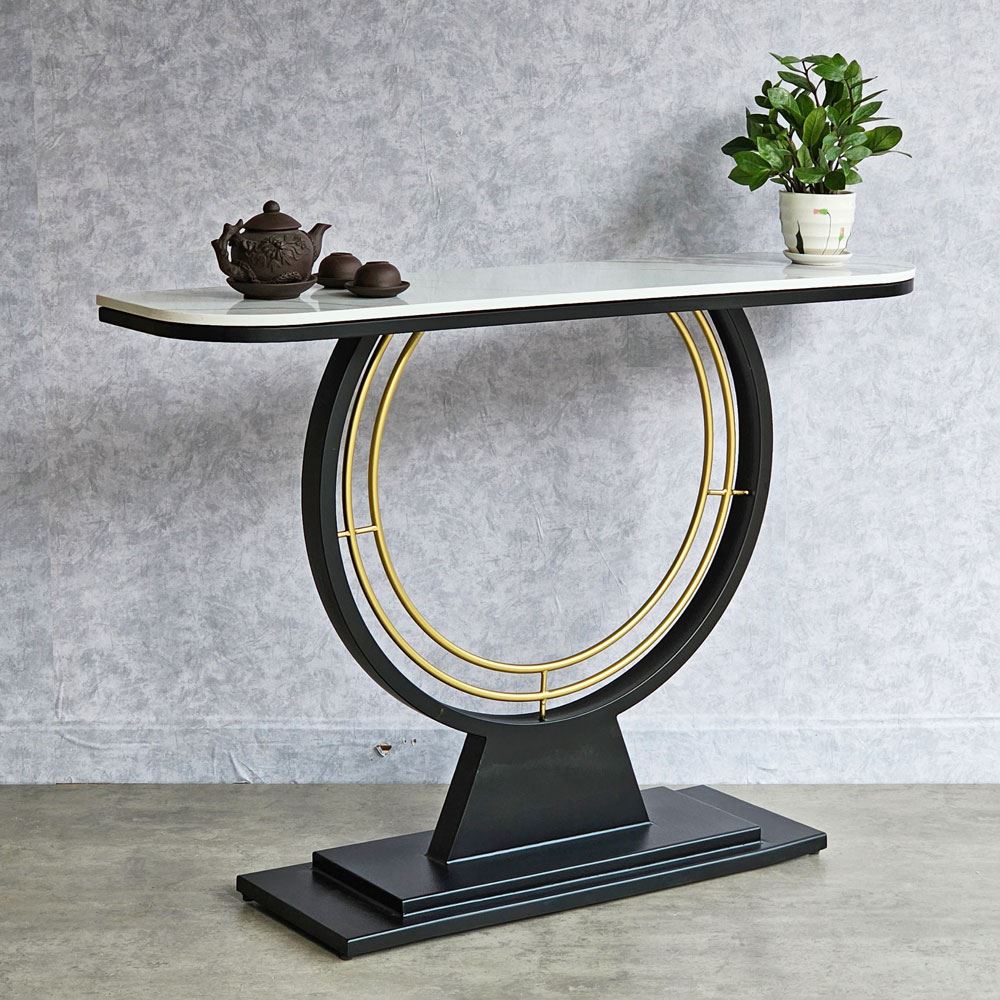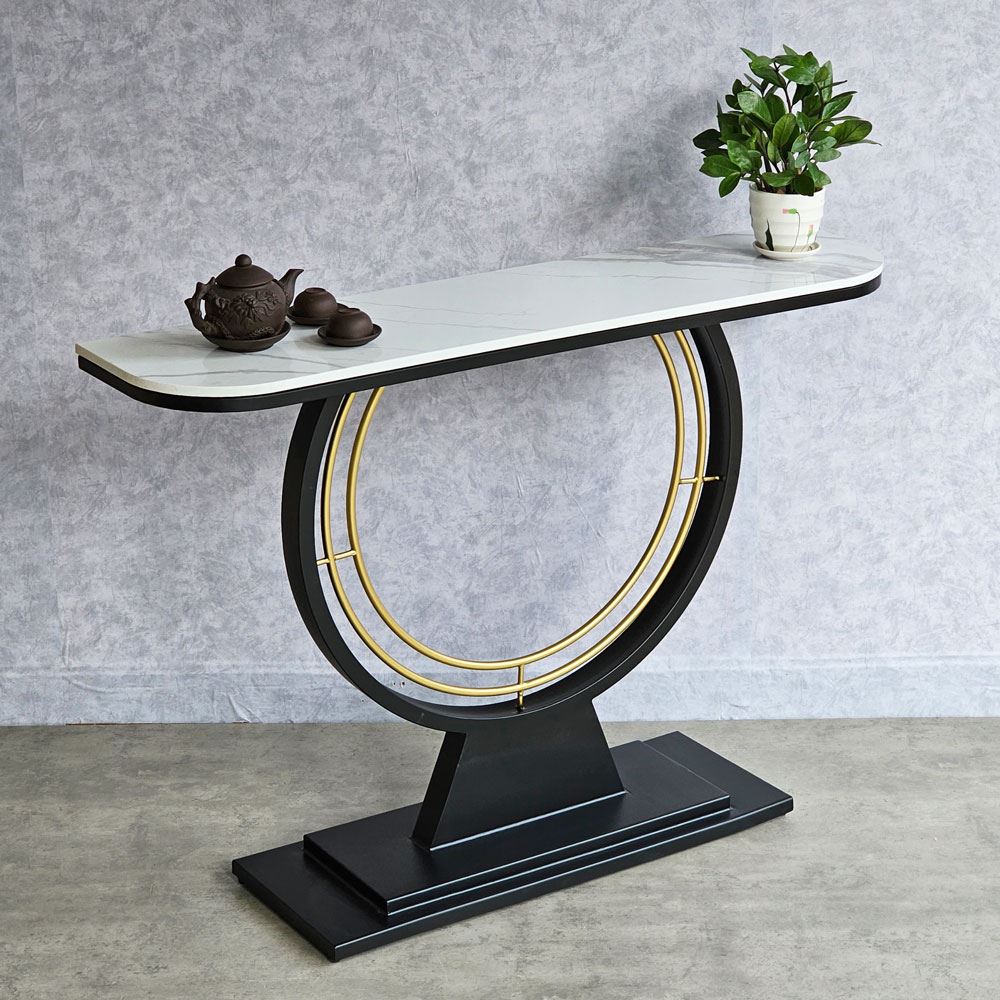 Bàn console DIN mặt đá khung sắt CST054 với mặt bàn đá vân mây đẹp mắt kết hợp khung sắt được gia công ti mỉ và có độ hoàn thiện cao. Mặt bàn đá cao cấp không dính nước và toát lên vẻ đẹp sang trọng nên được nhiều khách hàng ưa thích sử dụng. Khung sắt uốn tròn đẹp mắt tạo điểm nhấn cho sản phẩm, sắt sơn sơn nhiều màu sắc khác nhau kết hợp mặt đá 2 màu trắng hoặc đen giúp bạn có thêm nhiều sự lựa chọn,