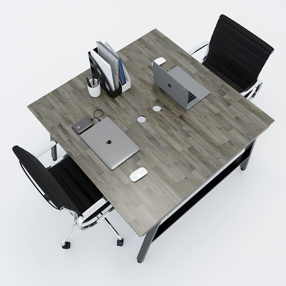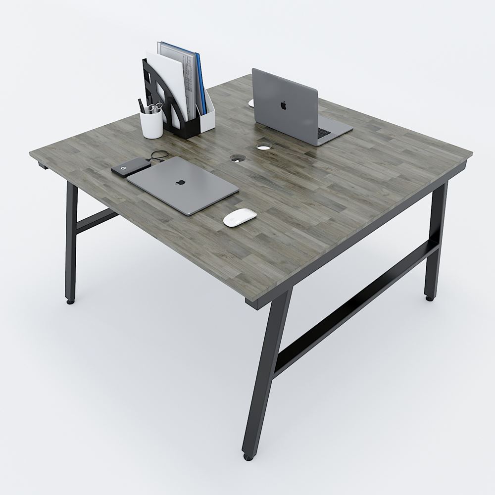 Bàn làm việc cụm 2 chỗ ngồi kích thước 120x120cm gỗ cao su chân sắt lắp ráp hệ Aconcept