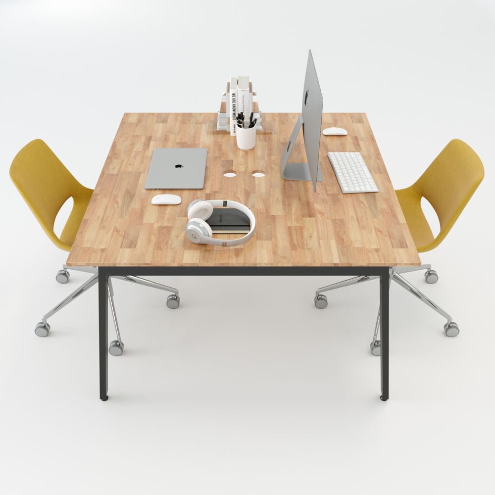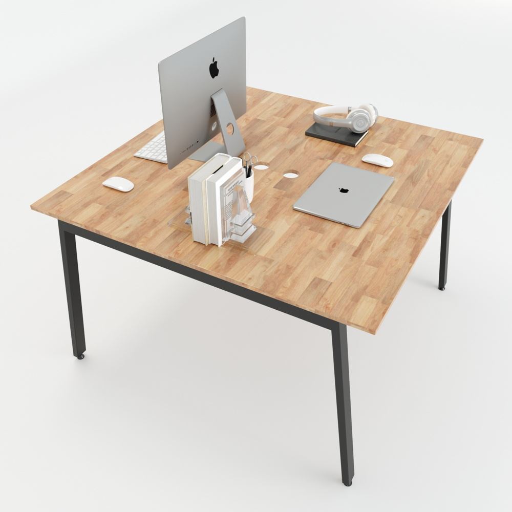 Bàn làm việc cụm 2 gỗ cao su chân sắt hệ Aton kích thước 120x120x75cm