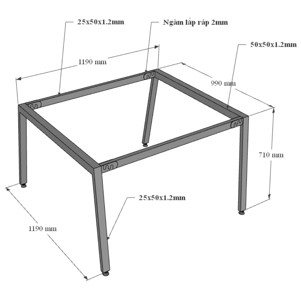 Chân bàn sắt lắp ráp sơn tĩnh điện cao cấp đảm bảo độ bền