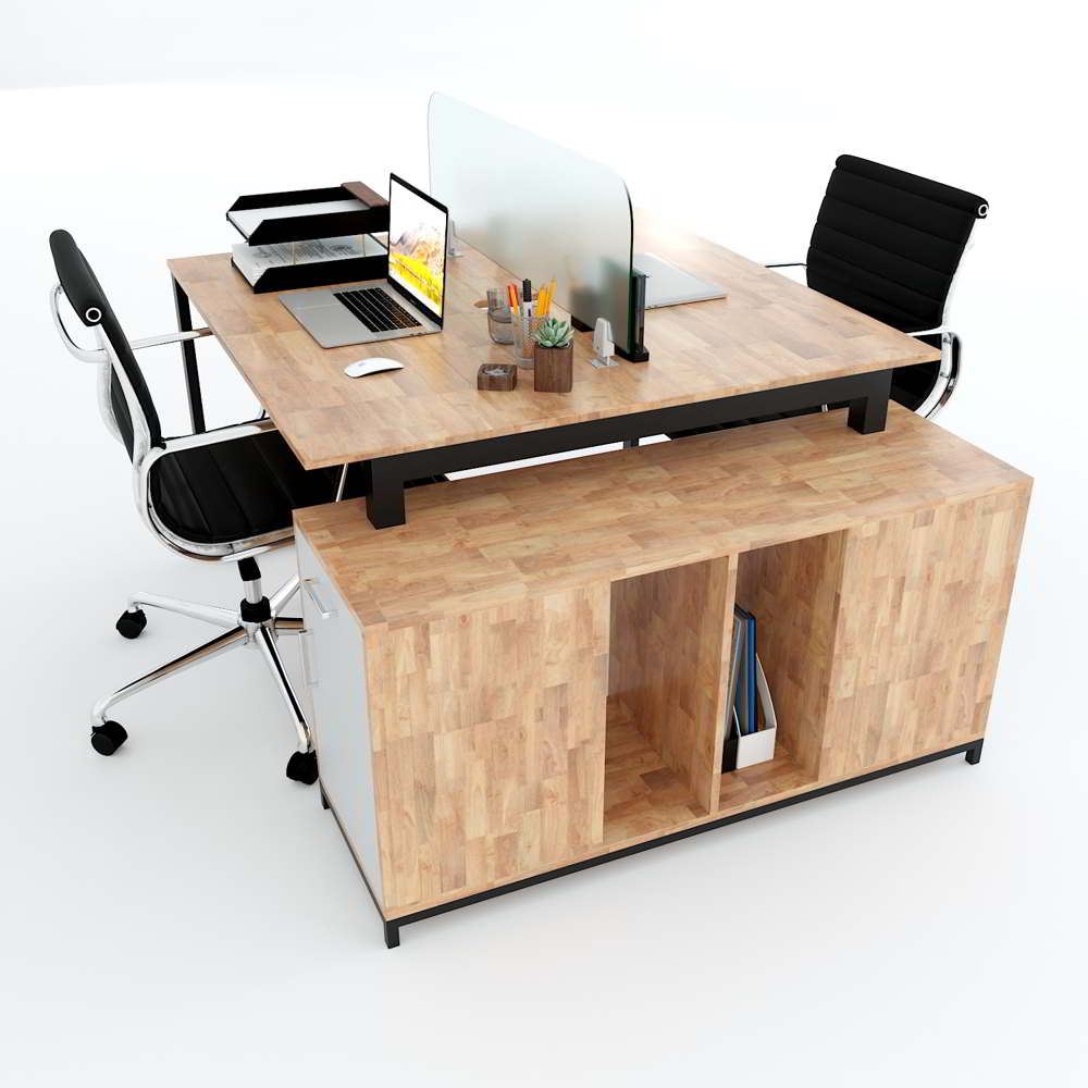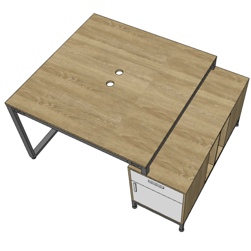 Bàn cụm 2 chân tủ hệ RECTANG HBRT032 chân sắt chữ nhật 25x50. Bàn văn phòng gỗ cao su ghép tiêu chuẩn AA dày 17mm được xử lý PU hoàn thiện cho bề mặt sản phẩm rất đẹp mắt, chống nước tuyệt đối. Hệ khung chân lắp ráp vô cùng chắc chắn và dễ dàng tháo lắp, bề mặt chân sắt phủ lớp sơn tĩnh điện cao cấp đảm bảo độ bền cao, chân có đế nhựa tăng giảm chống kênh và chống trầy sàn, đây chắc chắn sẽ là sự lựa chọn hoàn hảo dành cho những người đang tìm kiếm bàn làm việc 2 người ngồi cần nhiều không gian lưu trữ giấy tờ, hồ sơ thường xuyên sử dụng.