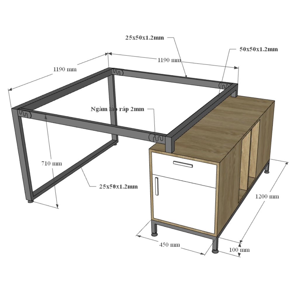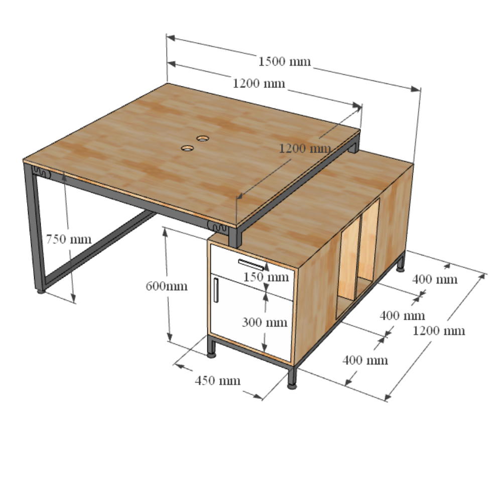 Kích thước chi tiết bàn cụm 2 chân tủ ( Hình ảnh minh họa kích thước, chân bàn theo mã sản phẩm)