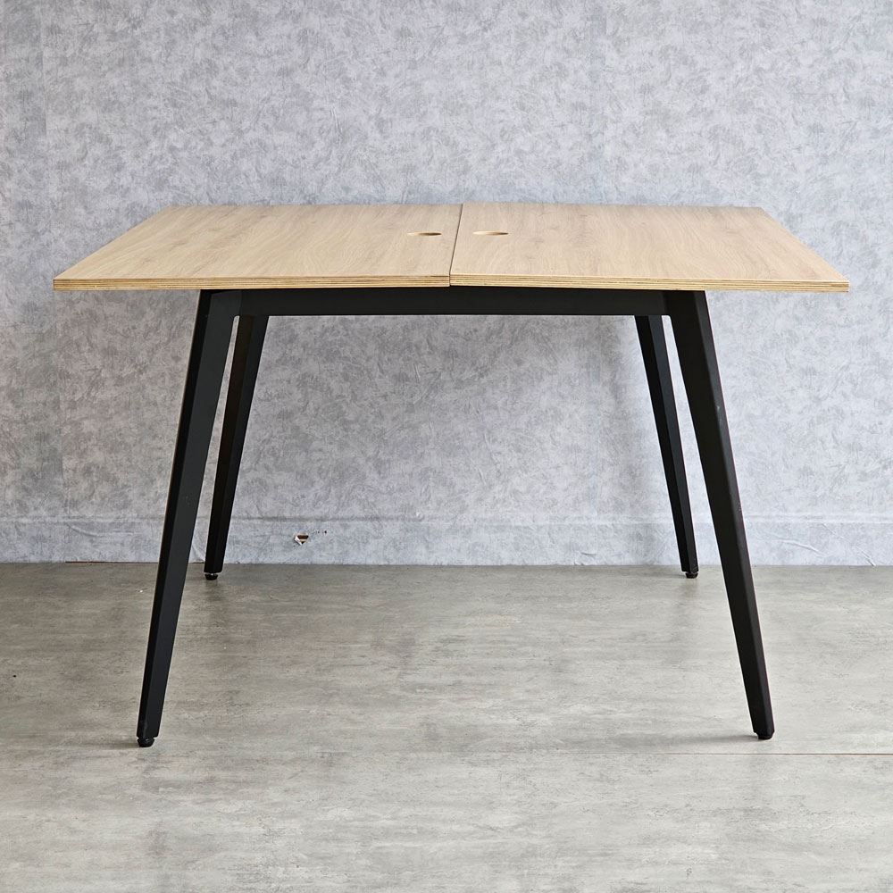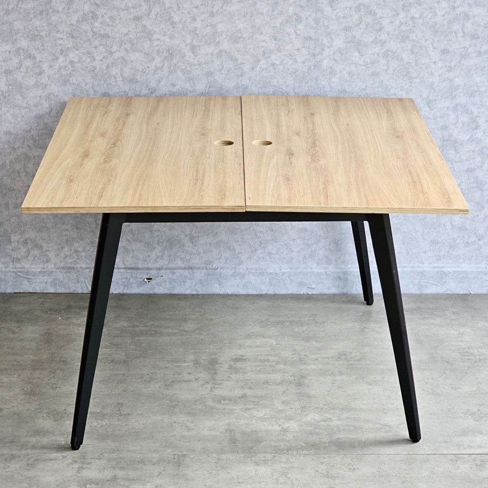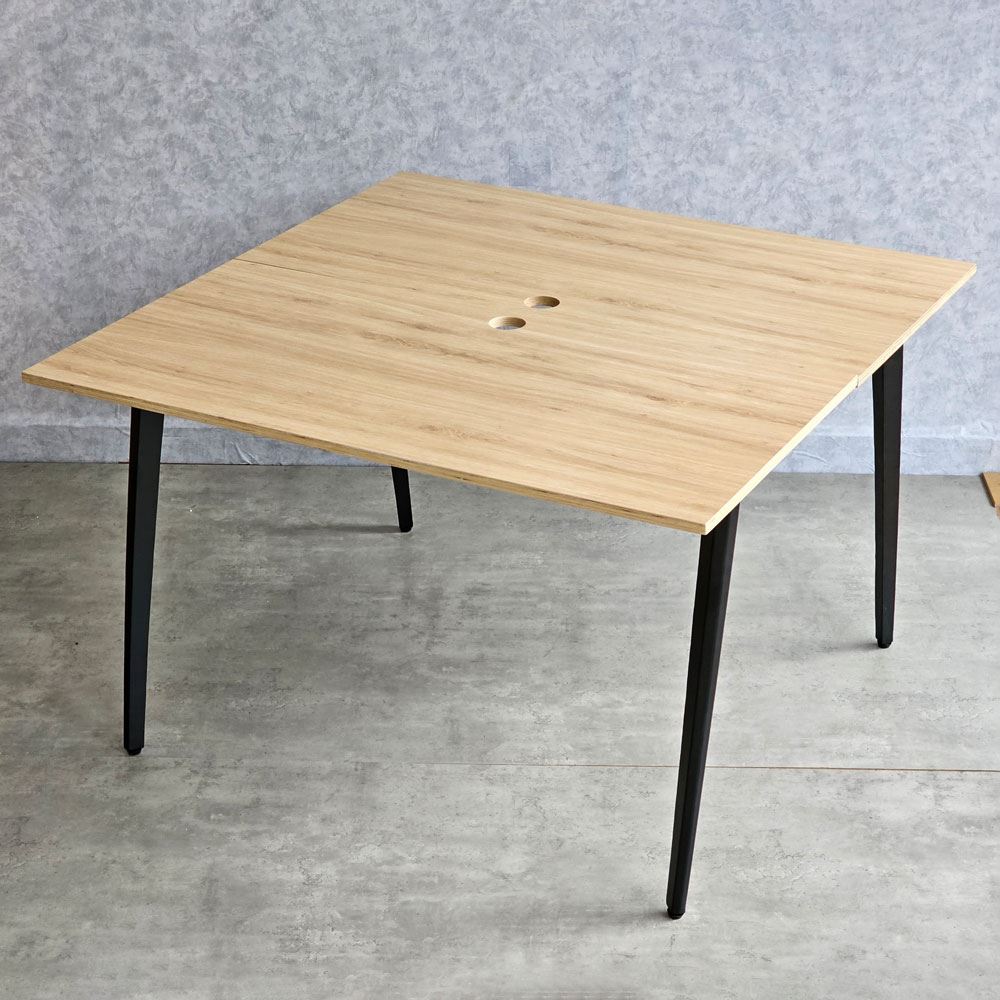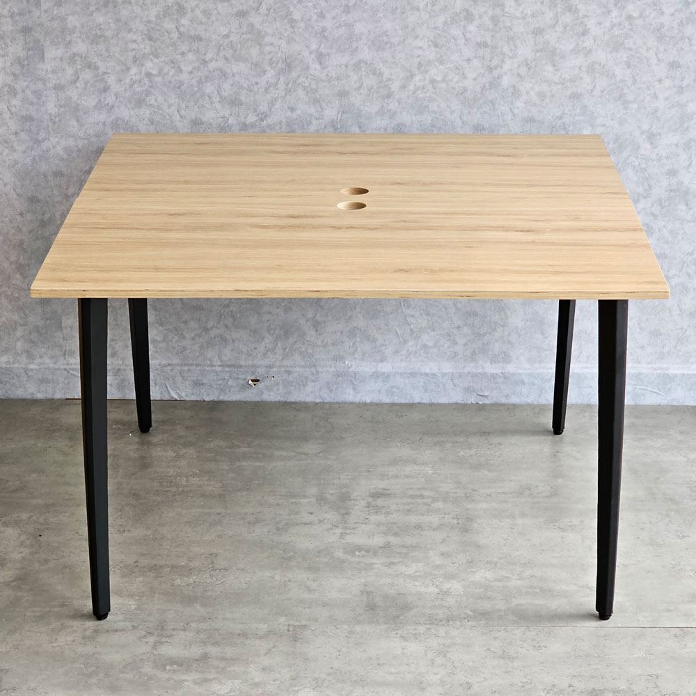 Với mặt bàn được làm bằng gỗ plywood phủ melamin sang trọng và đẹp mắt, với khả năng chống thấm nước cực kỳ tốt, không bị phù khi tiếp xúc với nước. Bề mặt gỗ được xử lý qua 4 công đoạn trước khi PU hoàn thiện cho bề mặt sản phẩm rất đẹp mắt, chống nước tuyệt đối. Hệ khung chân sắt sử dụng loại sắt dày dặn, giúp cho bàn luôn đảm bảo độ cứng cáp, ổn định và khả năng chịu lực tốt. Bề mặt khung chân sắt được phủ một lớp sơn tĩnh điện bảo vệ giúp chống ăn mòn, tăng tuổi thọ sản phẩm và đồng thời đảm bảo tính thẩm mỹ cao.