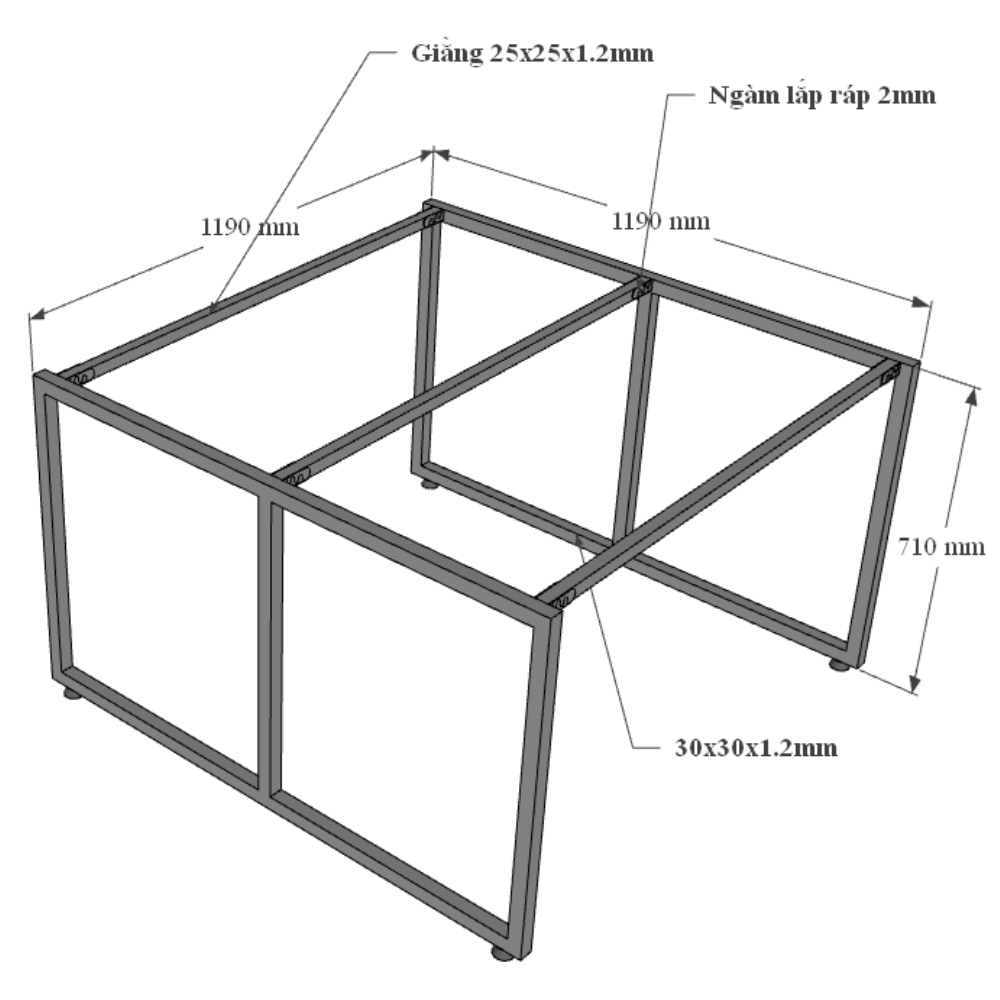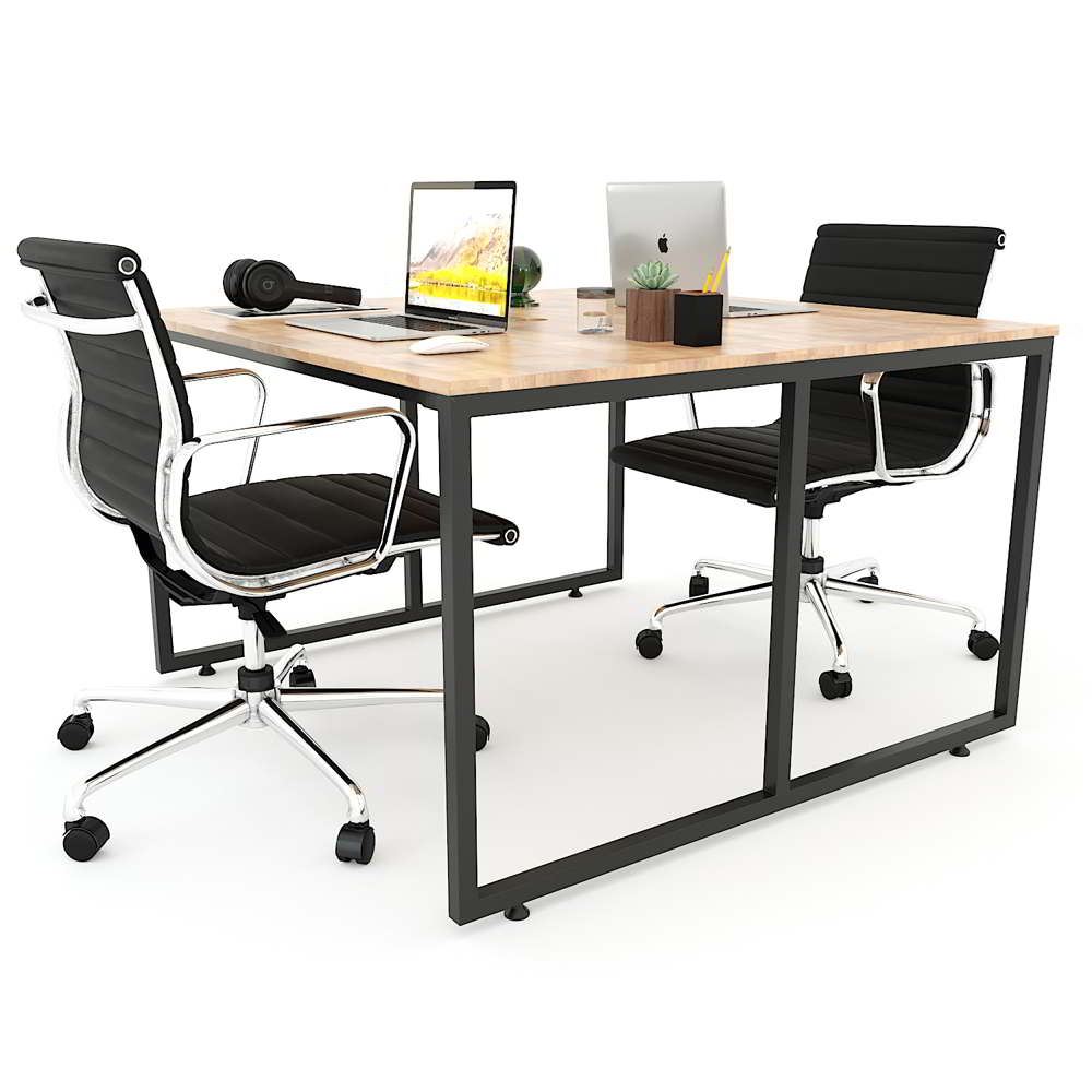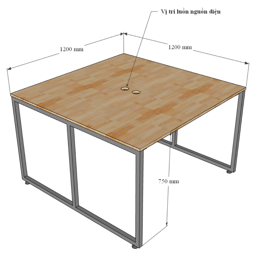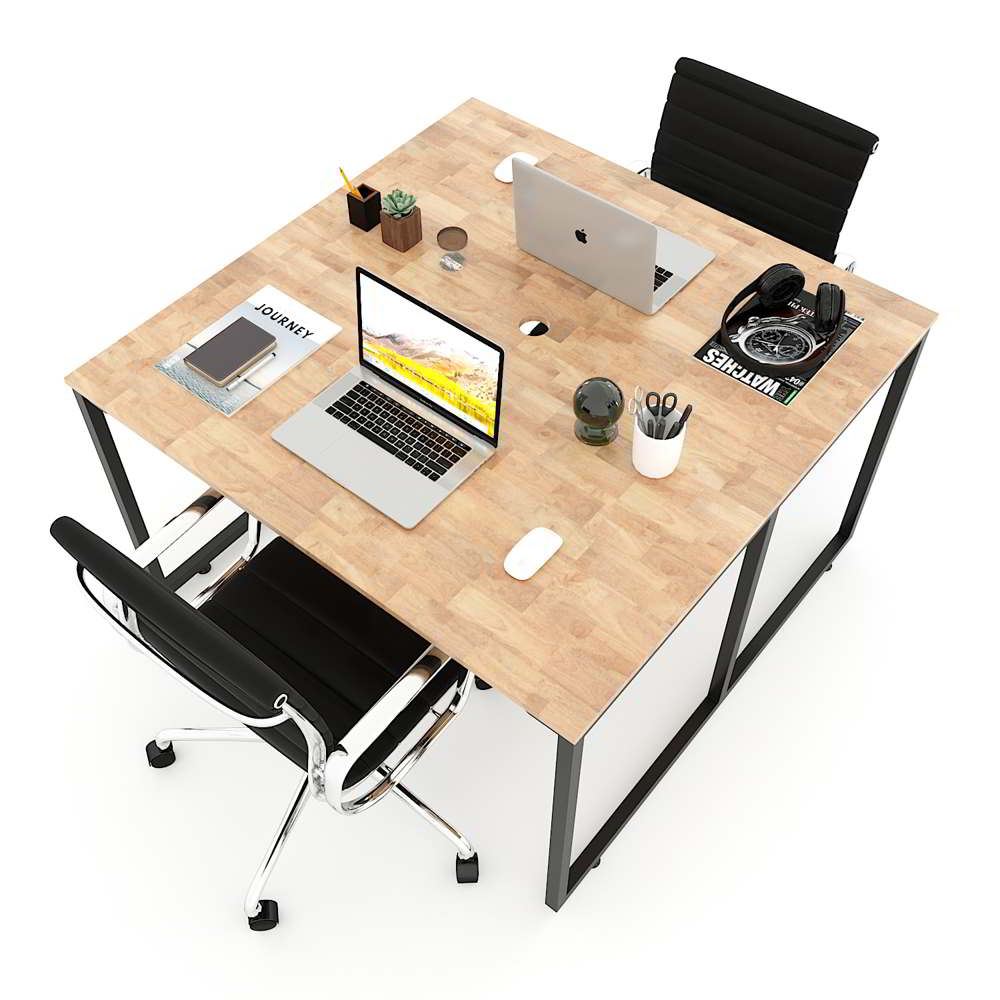 Bàn làm việc cụm 2 gỗ cao su chân sắt lắp ráp kích thước 120x120x75cm
