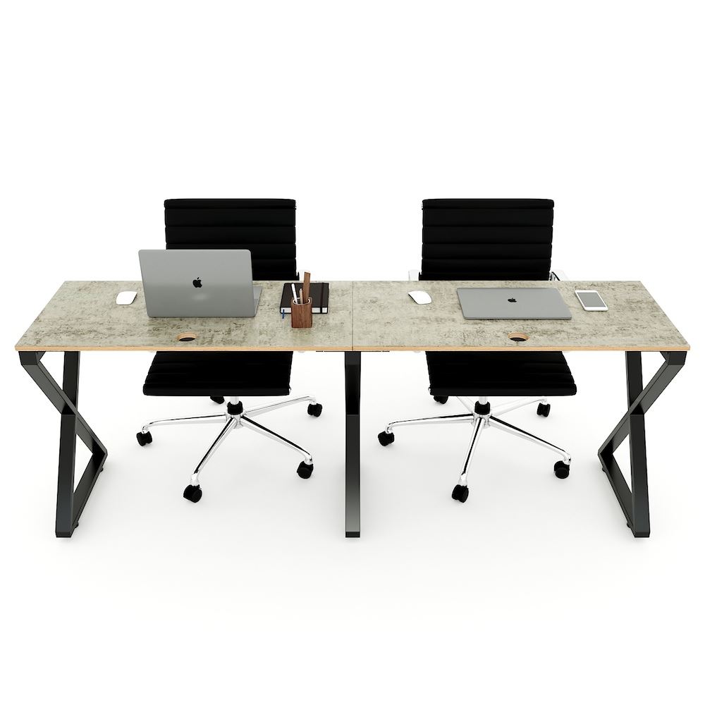 Bàn làm việc cụm 2 người ngồi mặt gỗ Plywood phủ melamin giả màu bê tông độc đáo
