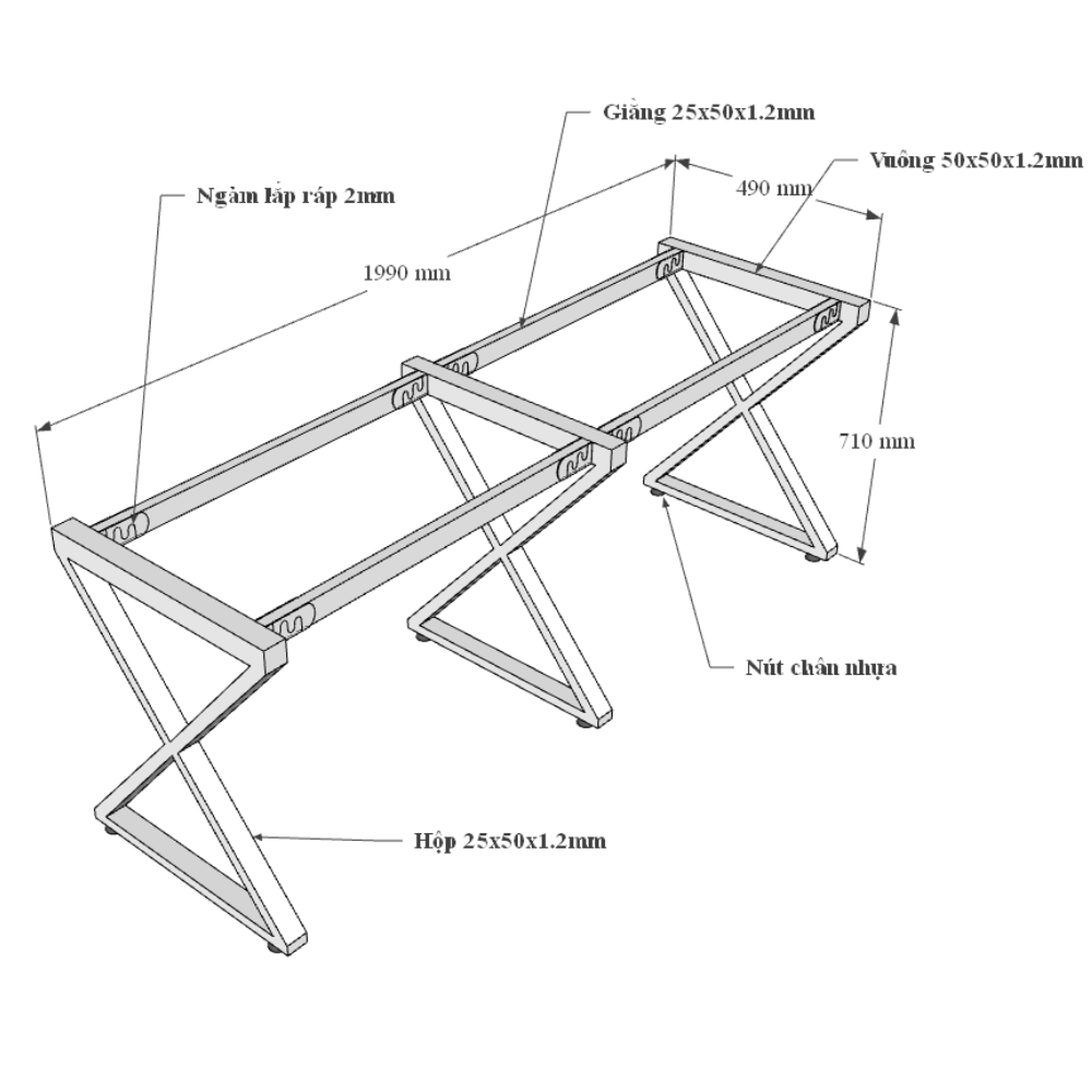 Hệ khung chân sắt cơ cấu lắp ráp ngàm chắc chắn, tiện lợi