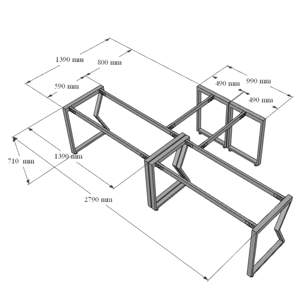 Chân bàn sử dụng sắt hộp 25x50mm và sắt hộp 50x50mm dày 1.2mm rất bền chắc thêm sơn tĩnh điện chất lượng cao cho hệ bàn cao cấp sử dụng thời gian rất dài
