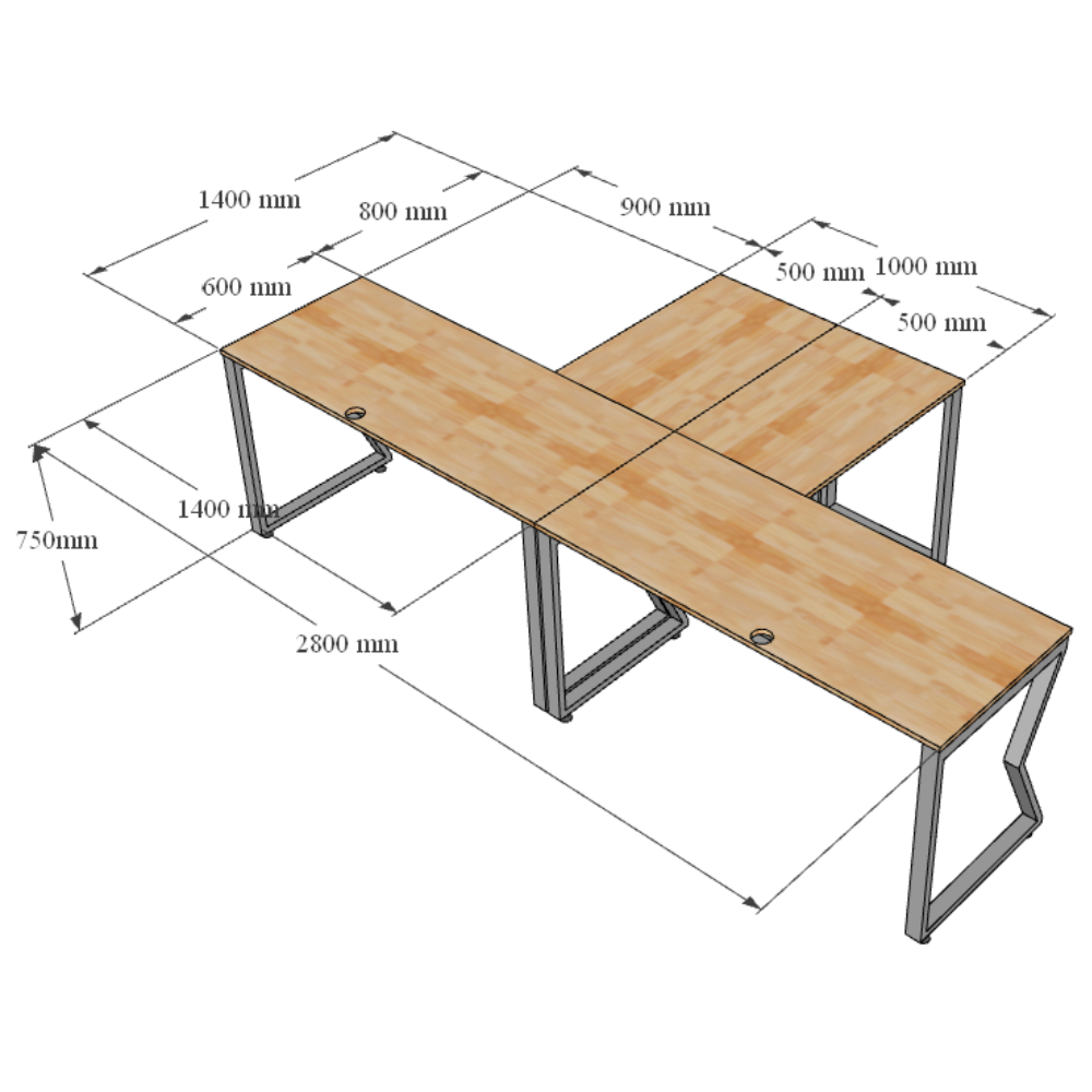 Bàn cụm 2 góc L nối tiếp MConcept HBMC027 gồm 2 bàn góc chữ L ghép lại theo kiểu nối tiếp song song hệ chân Mconcept lắp ráp ngàm sơn tĩnh điên chất lượng cao kết hợp với mặt bàn gỗ cao su tiêu chuẩn AA dày 17mm sơn Pu hoàn thiện hơn hẳn các loại gỗ công nghiệp khác, không sợ nước và không bị bong tróc với 5 màu sắc lựa chọn, Mẫu bàn cụm kích thước dài 2.8m x60cm với 2 góc chữ L sát nhau mỗi góc 80x50cm kiểu dáng ngồi song song tách biệt giữa hai người nhưng vẫn có thể giao tiếp thuận lợi qua góc chữ L, tối ưu không gian cực tốt
