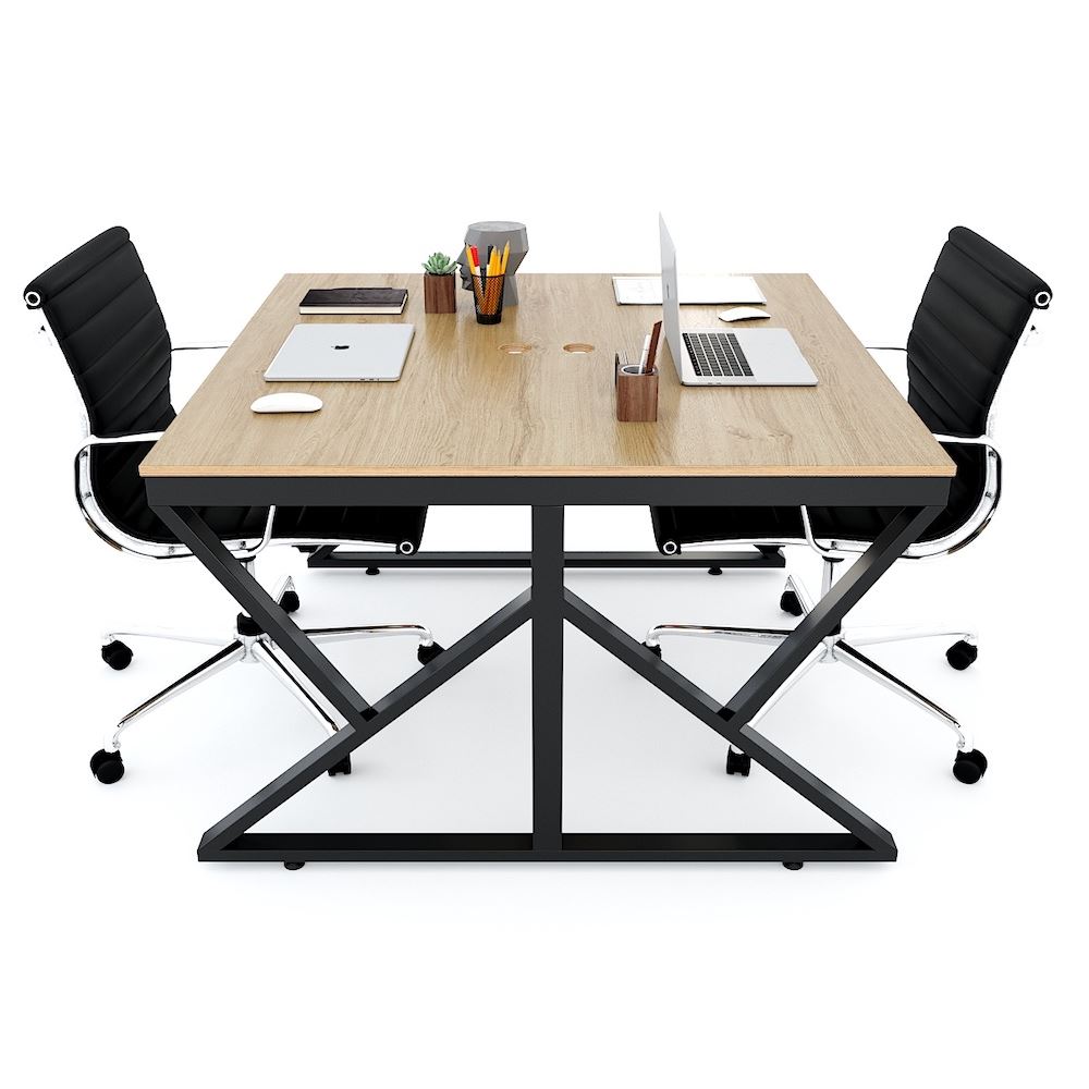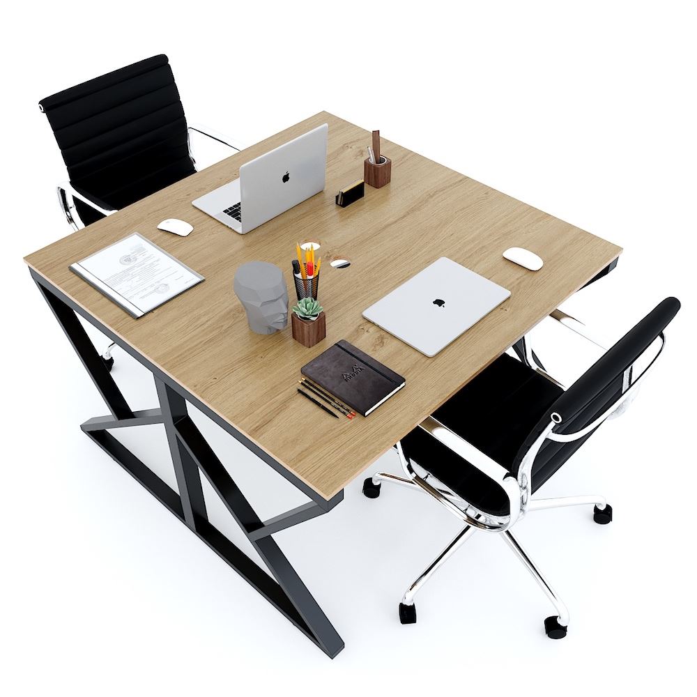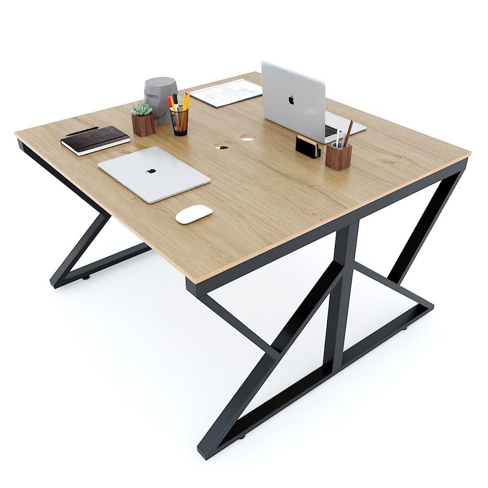 Bàn cụm 2 người 120x120cm chân sắt hệ Kconcept HBKC035 với mặt bàn gỗ Plywood cốt gỗ tự nhiên bề mặt phủ melamin vân sồi đẹp mắt, bề mặt bàn được xử lý chống thấm nước và cong vênh, màu gỗ tự nhiên đẹp mắt mang đến sự thân thiện, gần gũi cho không gian làm việc của bạn. Kết hợp với mặt bàn làm việc Plywood là hệ khung chân sắt theo cơ cấu lắp ráp ngàm thông minh, tiện lợi nhưng vẫn đảm bảo độ chắc chắn, bên cạnh đó bề mặt chân sắt được phủ lớp sơn tĩnh điện cao cấp làm hạn chế ăn mòn hoá học giúp sản phẩm có độ bền cao hơn. Bàn Cụm 2 HBKC035 với kích thước mặt bàn 120x120cm và chiều cao tiêu chuẩn 75cm phù hợp với mọi loại ghế văn phòng phù hợp với nhiều không gian.