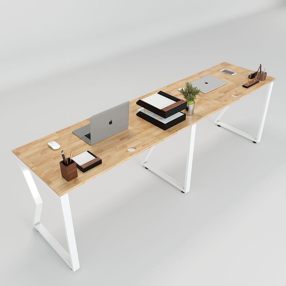Bàn cụm 2 song song Mconcept 60x240cm HBMC026 tiết kiệm hơn so với 2 bàn đơn với hệ 3 chân trụ Mconcept lắp ráp ngàm sơn tĩnh điên chất lượng cao kết hợp với mặt bàn gỗ cao su tiêu chuẩn AA dày 17mm sơn Pu hoàn thiện hơn hẳn các loại gỗ công nghiệp khác, không sợ nước và không bị bong tróc với 5 màu sắc lựa chọn, mẫu bàn cụm 2 kích thước 60x240cm kiểu dáng ngồi song song