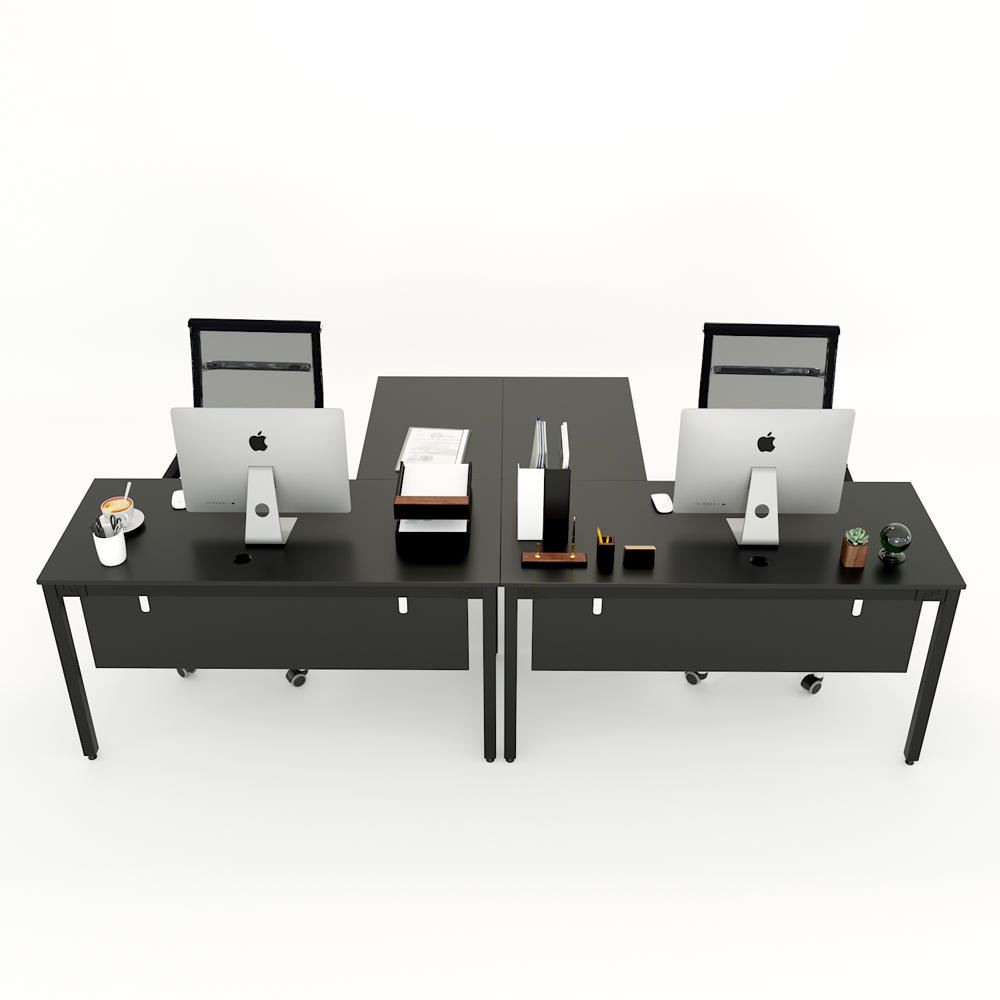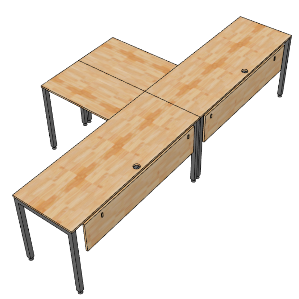 HBUC027 - Bàn cụm 2 góc L nối tiếp UConcept gồm 2 bàn góc chữ L ghép lại theo kiểu nối tiếp song song hệ chân Uconcept lắp ráp ngàm sơn tĩnh điên chất lượng cao kết hợp với mặt bàn gỗ cao su tiêu chuẩn AA dày 17mm sơn Pu hoàn thiện hơn hẳn các loại gỗ công nghiệp khác, không sợ nước và không bị bong tróc với 5 màu sắc lựa chọn. Bàn văn phòng cụm 2 kích thước dài 2.8m x60cm với 2 góc chữ L sát nhau mỗi góc 80x50cm kiểu dáng ngồi song song tách biệt giữa hai người nhưng vẫn có thể giao tiếp thuận lợi qua góc chữ L, tối ưu không gian cực tốt
