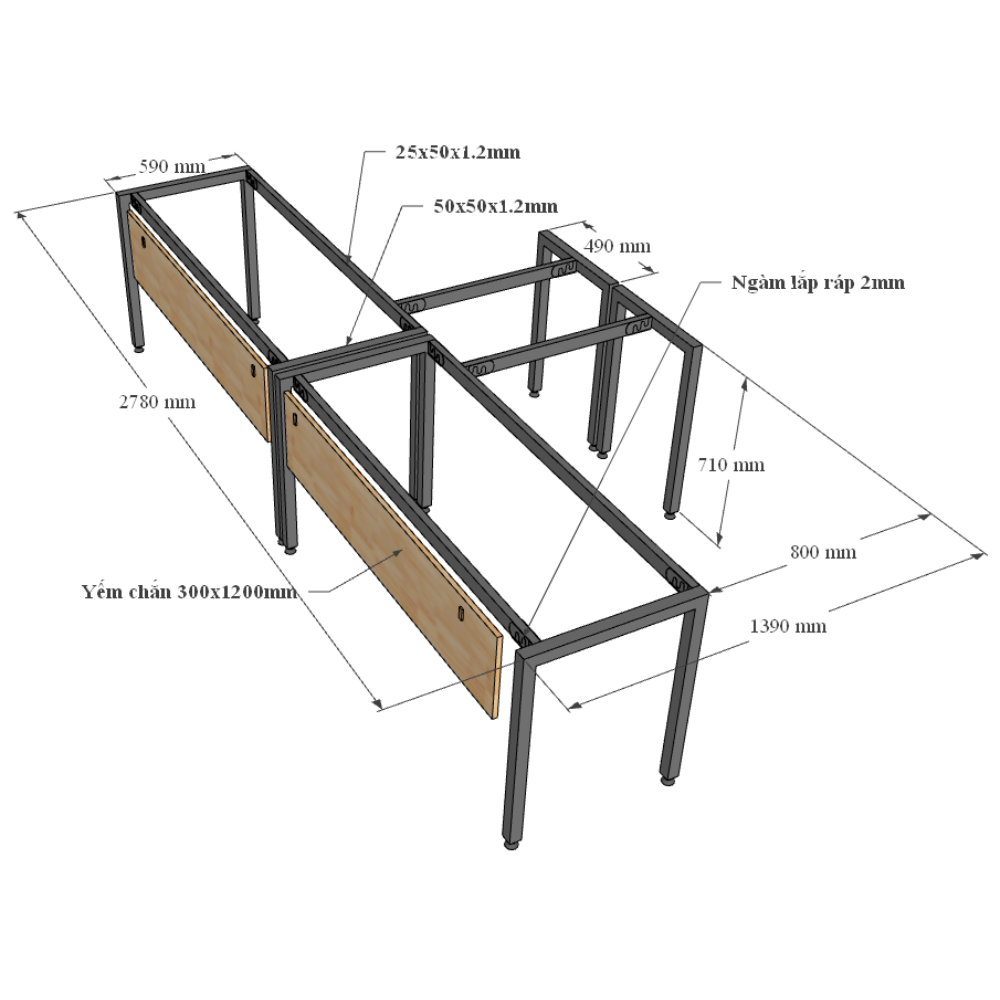 Chân bàn sử dụng sắt hộp 40x40mm và sắt hộp 25x50mm dày 1.2mm rất bền chắc thêm sơn tĩnh điện chất lượng cao cho hệ bàn cao cấp sử dụng thời gian rất dài