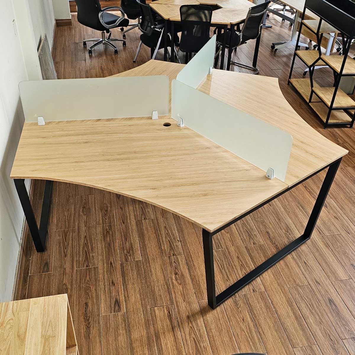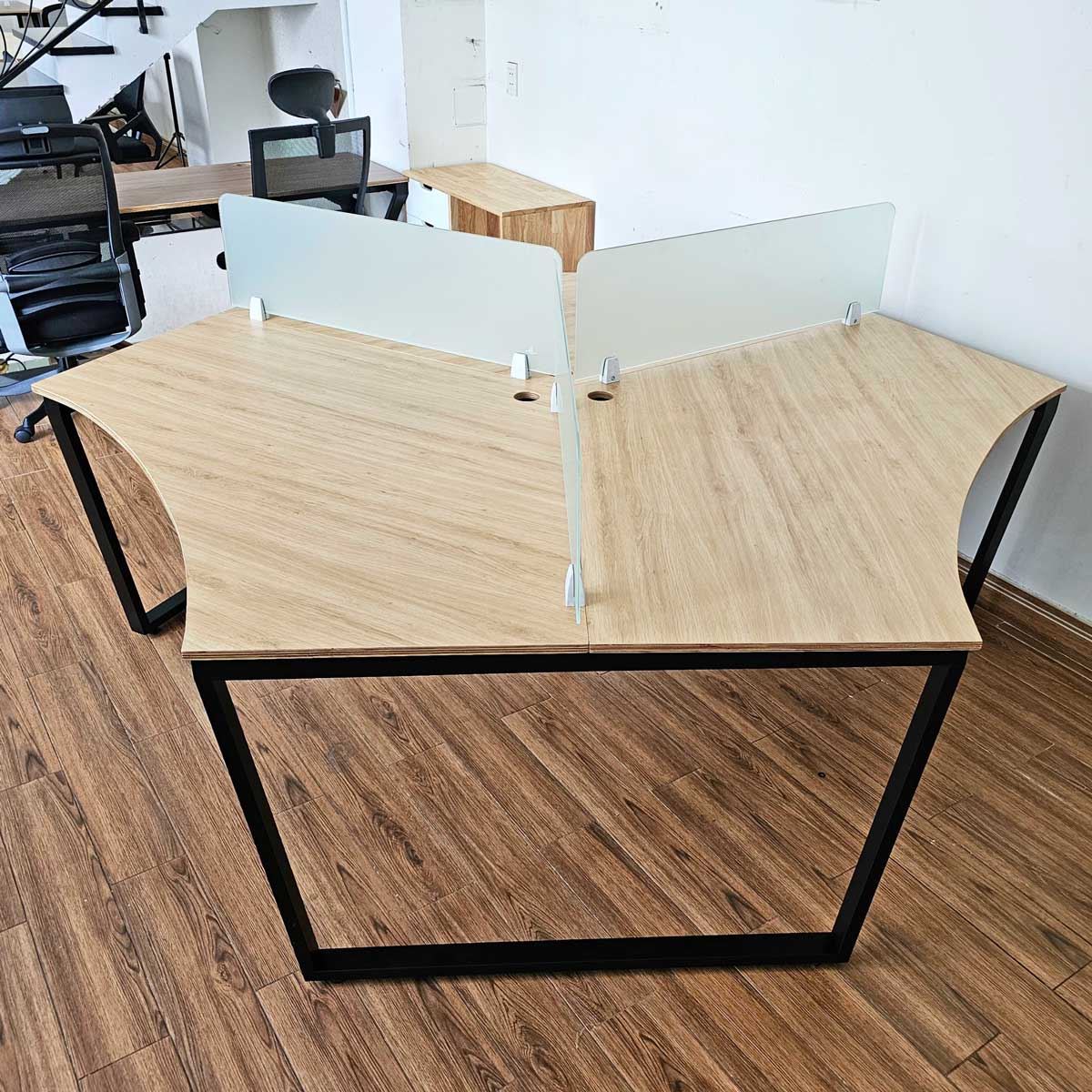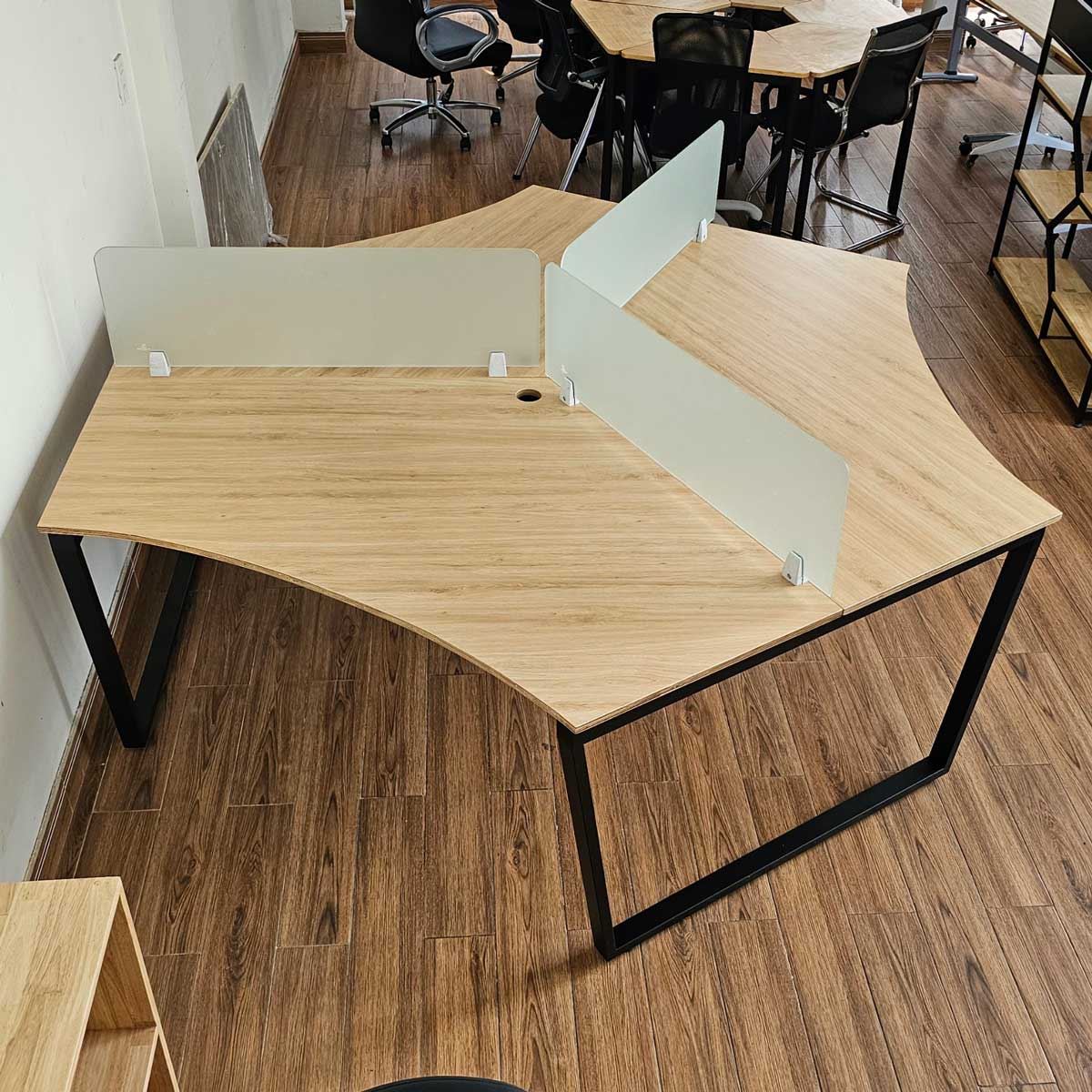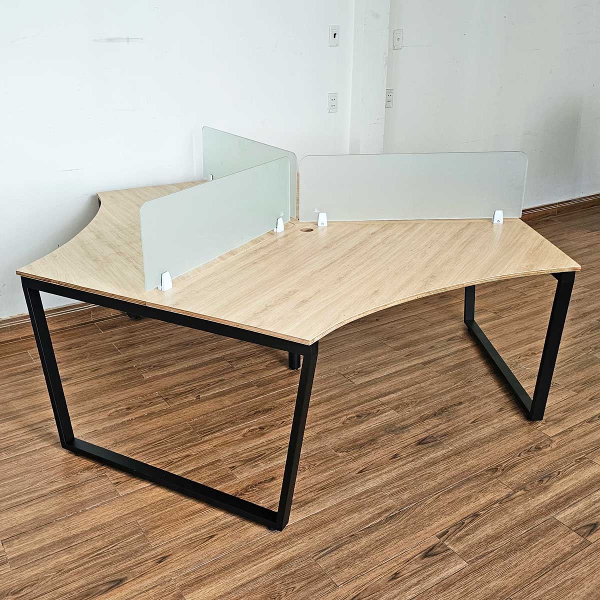 Bàn Cụm 3 HBTC025 Trapeze Concept chân sắt chữ nhật 25x50mm. với mặt bàn gỗ plywood cốt gỗ tự nhiên bề mặt phủ melamin, đã được xử lý chống thấm nước. Bề mặt có 3 tùy chọn vân gỗ hoặc vân bê tông độc đáo chắc chắn là điểm nhấn thú vị cho không gian làm viêc của bạn. Kết hợp với mặt bàn Plywood là hệ khung chân sắt theo cơ cấu lắp ráp ngàm thông minh, tiện lợi nhưng vẫn đảm bảo độ chắc chắn, bên cạnh đó bề mặt chân sắt được phủ lớp sơn tĩnh điện cao cấp làm hạn chế ăn mòn hoá học giúp sản phẩm có độ bền cao hơn.