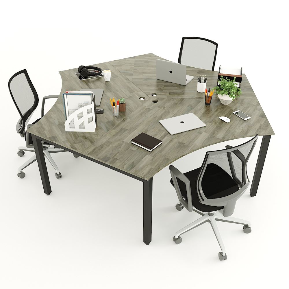 Bàn làm việc cụm 3 với những đường cong bo cạnh mang đến không gian tươi mới, năng động