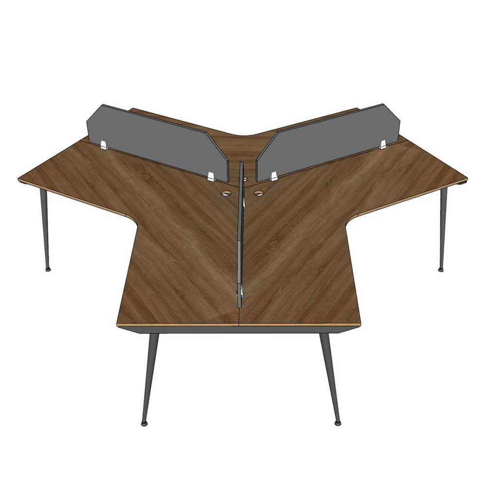 Bàn Cụm 3 hệ CONE HBCO056 với mặt bàn gỗ plywood cốt gỗ tự nhiên bề mặt phủ melamin, đã được xử lý chống thấm nước. Bề mặt có 3 tùy chọn vân gỗ hoặc vân bê tông độc đáo chắc chắn là điểm nhấn thú vị cho không gian làm viêc của bạn. Kết hợp với mặt bàn Plywood là hệ khung chân sắt theo cơ cấu lắp ráp ngàm thông minh, tiện lợi nhưng vẫn đảm bảo độ chắc chắn, bên cạnh đó bề mặt chân sắt được phủ lớp sơn tĩnh điện cao cấp làm hạn chế ăn mòn hoá học giúp sản phẩm có độ bền cao hơn.
