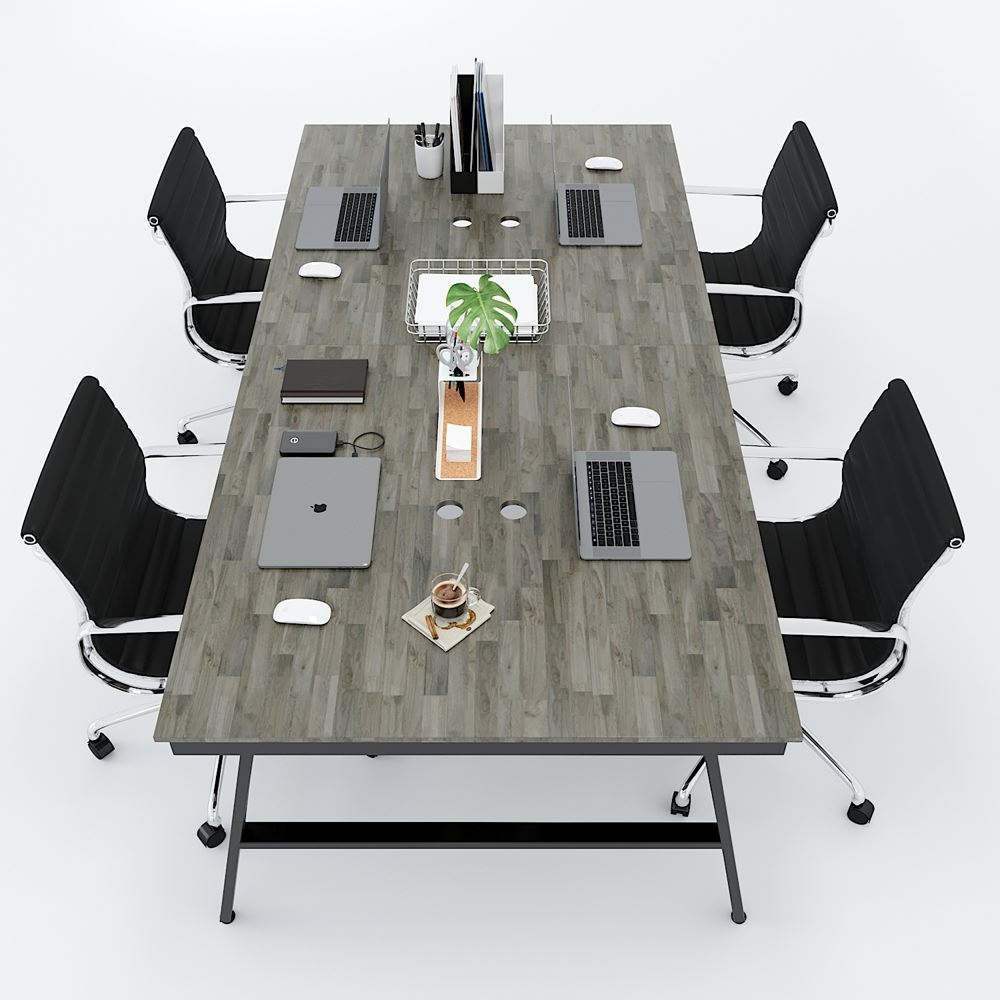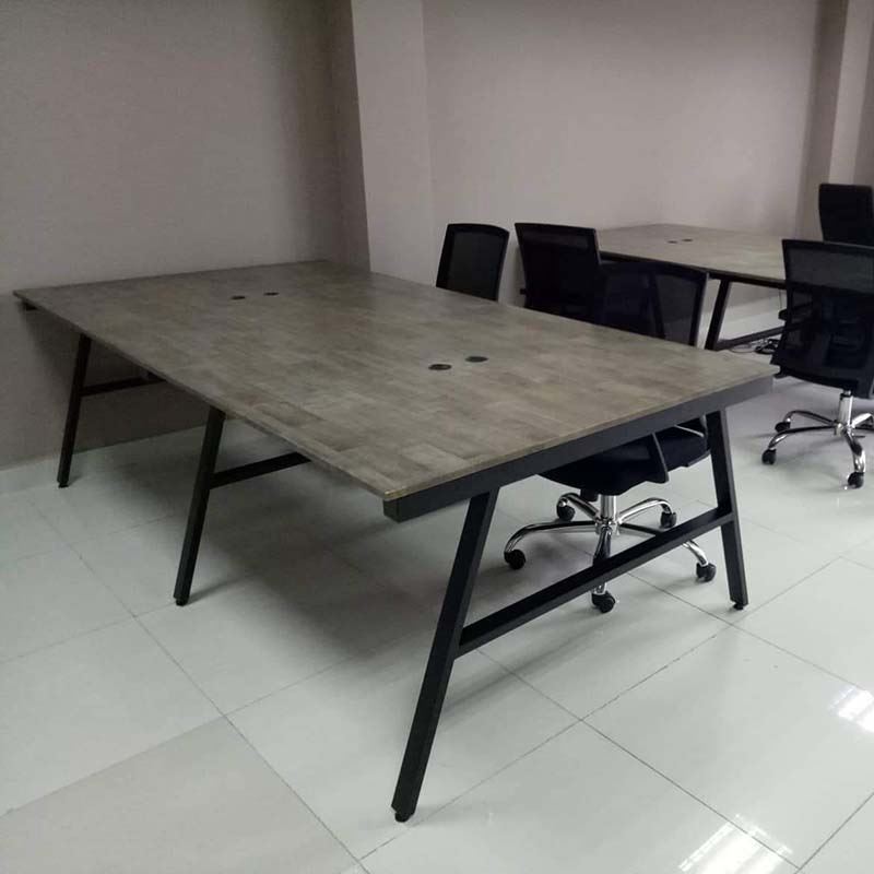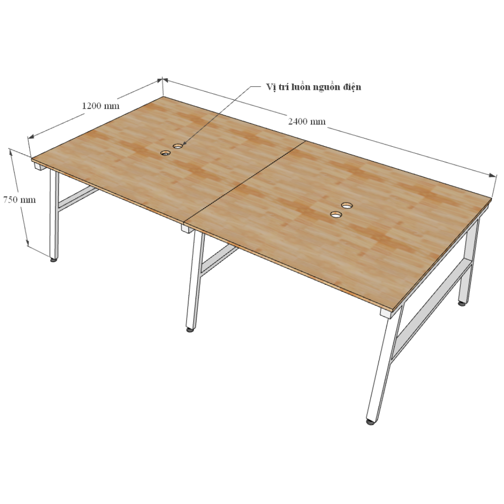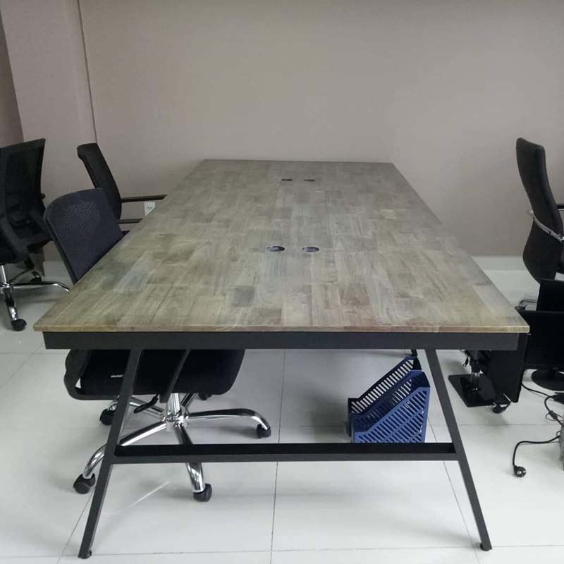 Bàn cụm 4 kích thước 240x120x75cm gỗ cao su chân sắt lắp ráp hệ Aconcept