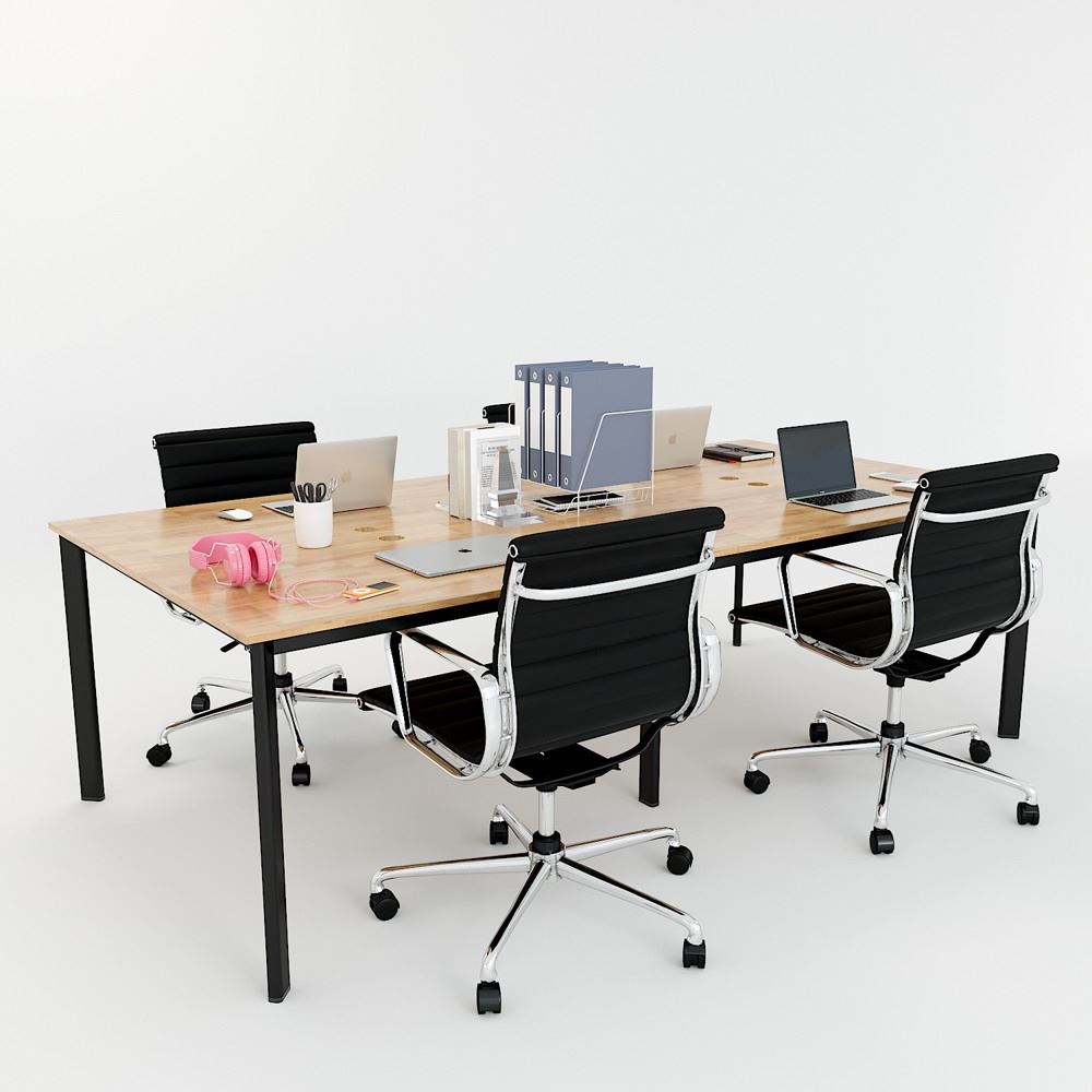 Bàn Cụm 4 HBOV013 Oval Concept sử dụng chân sắt Oval. Bàn văn phòng gỗ cao su ghép tiêu chuẩn AA dày 17mm PU màu gỗ tự nhiên luôn có một vẻ đẹp riêng, thân thiện với môi trường, đối với các văn phòng mở, văn phòng kết hợp với cây xanh thì việc sử dụng bàn gỗ cao su chân sắt kết hợp trở nên hoàn hảo. Chất liệu gỗ cao su tại HomeOffice là gỗ ghép dày 17mm tiêu chuẩn AA ( 2 mặt đẹp) được xử lý qua 4 công đoạn trước khi PU hoàn thiện cho bề mặt sản phẩm rất đẹp mắt, chống nước tuyệt đối. Khung chân sắt sơn tĩnh điện với cơ cấu ngàm lắp ráp dễ dàng.