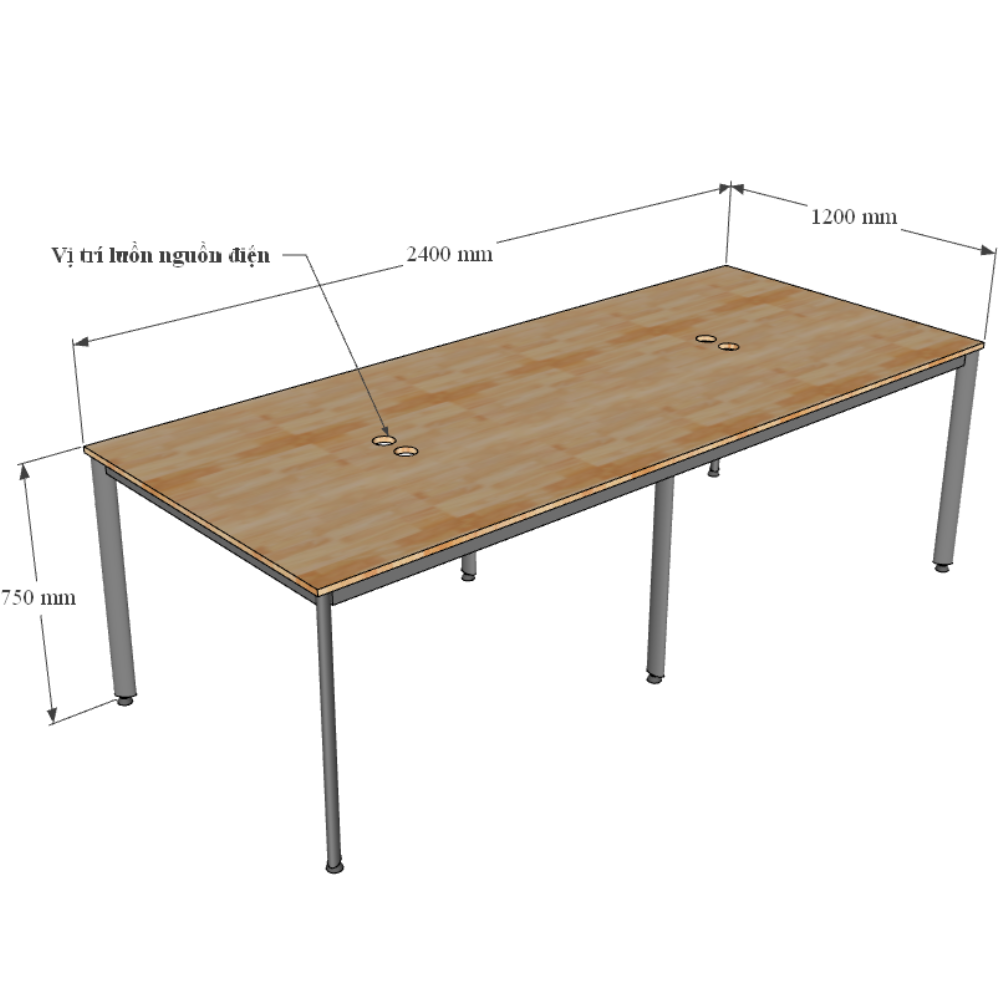 Bàn cụm 4 gỗ cao su chân sắt lắp ráp kích thước 240x120x75cm
