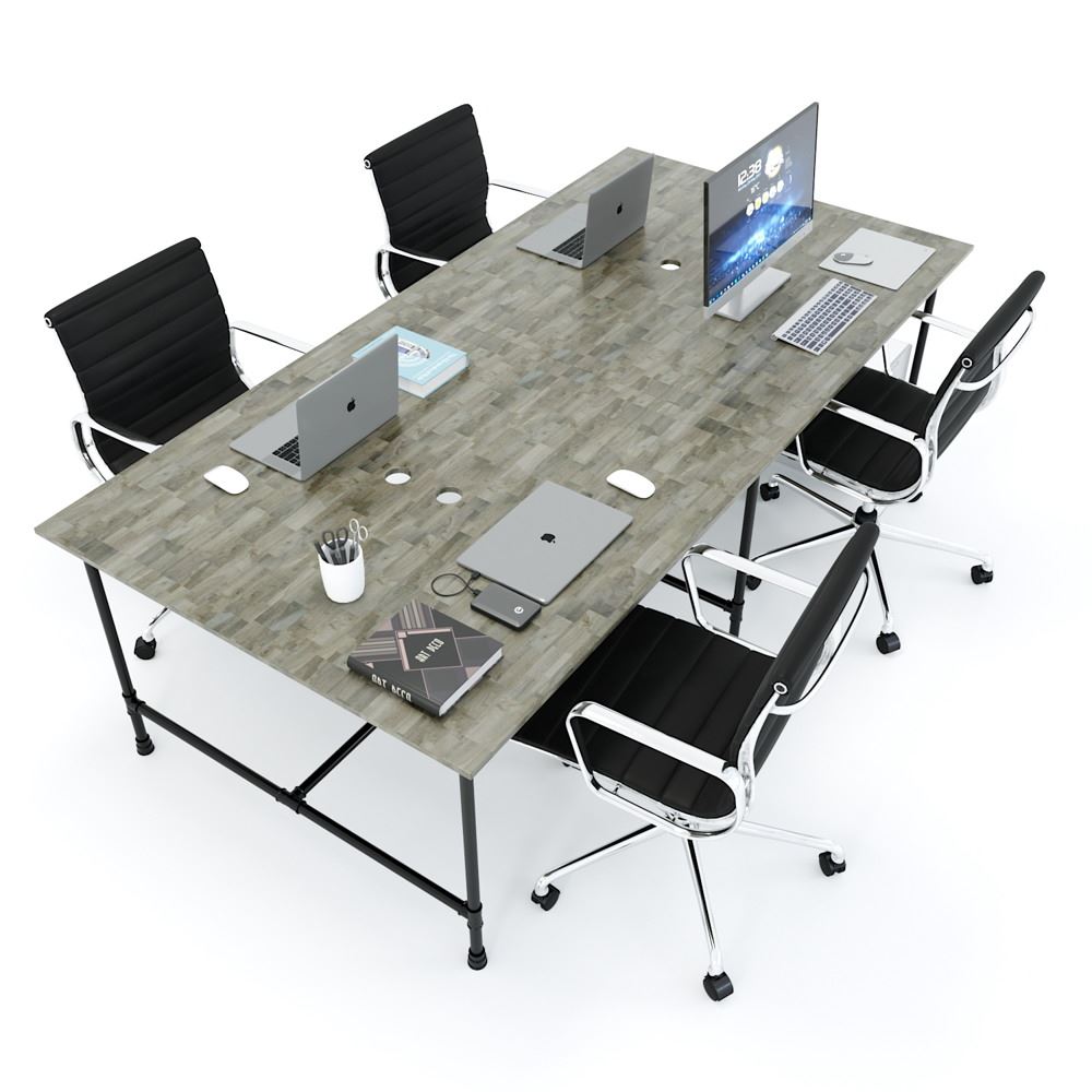 Bàn Cụm 4 HBON007 Pipe Concept sử dụng chân sắt ống nước độc đáo. Bàn văn phòng gỗ cao su ghép tiêu chuẩn AA dày 17mm PU màu gỗ tự nhiên luôn có một vẻ đẹp riêng, thân thiện với môi trường, đối với các văn phòng mở, văn phòng kết hợp với cây xanh thì việc sử dụng bàn gỗ cao su chân sắt kết hợp trở nên hoàn hảo. Chất liệu gỗ cao su tại HomeOffice là gỗ ghép dày 17mm tiêu chuẩn AA ( 2 mặt đẹp) được xử lý qua 4 công đoạn trước khi PU hoàn thiện cho bề mặt sản phẩm rất đẹp mắt, chống nước tuyệt đối. Khung chân sắt sơn tĩnh điện cao cấp chống rỉ sét