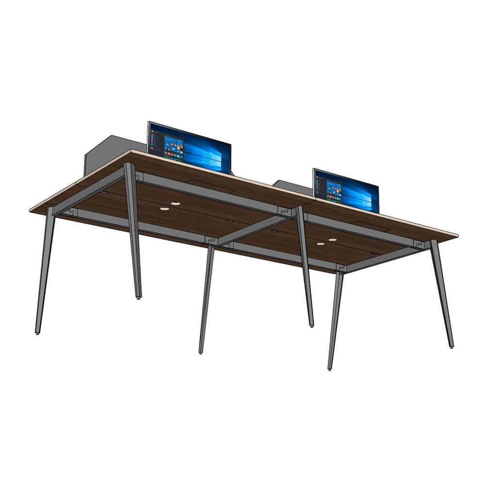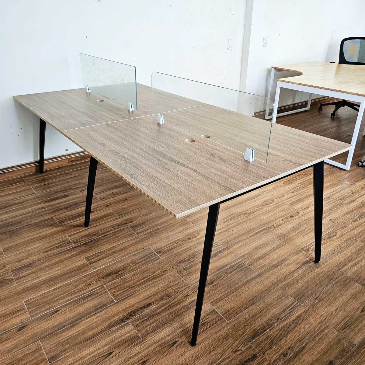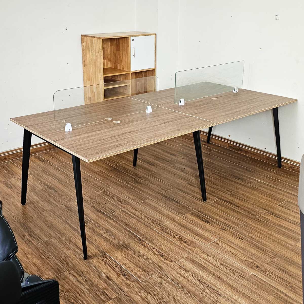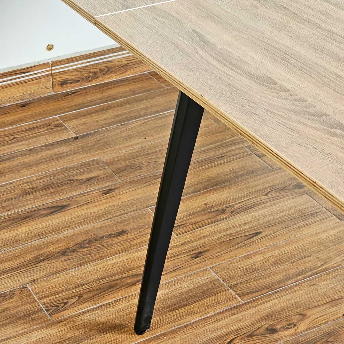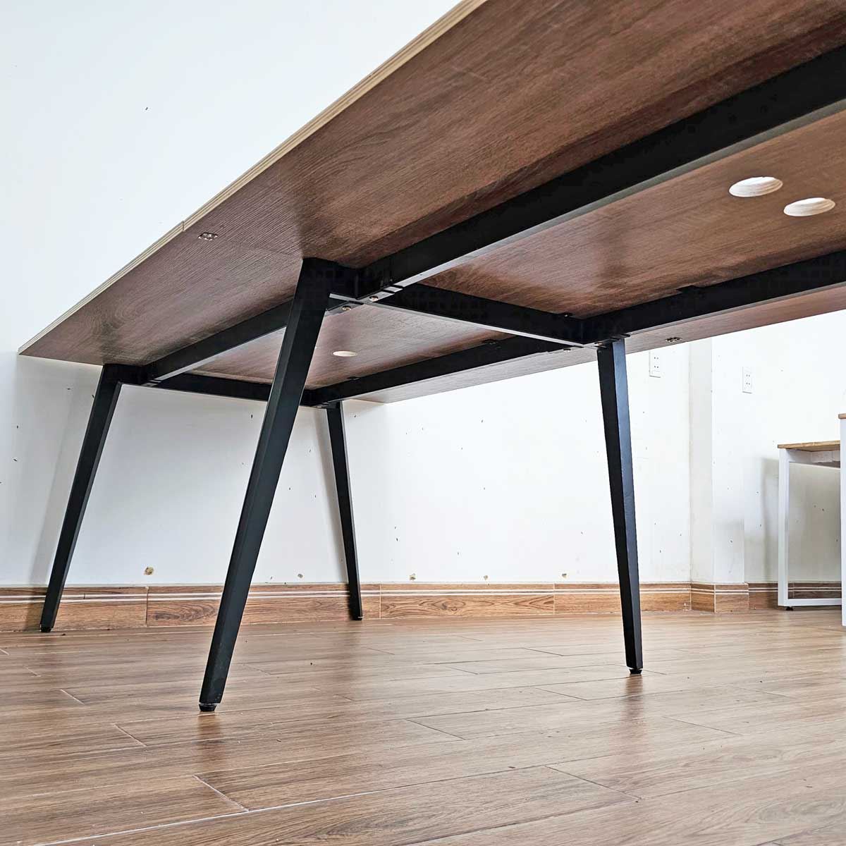 Với mặt bàn được làm bằng gỗ plywood, có cấu trúc từ những tấm ván ép lại với nhau tạo ra một cấu trúc khá vững chắc. Sự xen kẽ giữa các lớp gỗ và việc sử dụng keo chịu nước để liên kết chúng làm tăng tính cứng của vật liệu. Điều này cho phép gỗ plywood chịu được sức ép và trọng lượng lớn hơn so với gỗ thông thường mà không bị cong vênh hay biến dạng nhiều. Hệ khung chân sắt sử dụng loại sắt dày dặn, giúp cho bàn luôn đảm bảo độ cứng cáp, ổn định và khả năng chịu lực tốt. Bề mặt khung chân sắt được phủ một lớp sơn tĩnh điện bảo vệ giúp chống ăn mòn, tăng tuổi thọ sản phẩm và đồng thời đảm bảo tính thẩm mỹ cao.