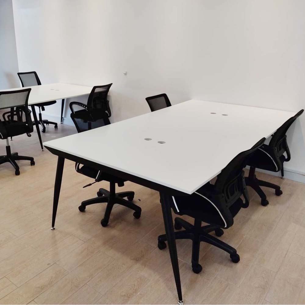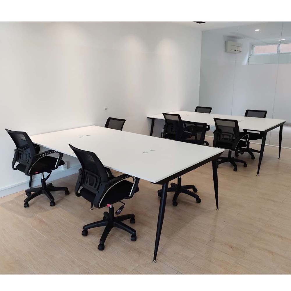 Bàn Cụm 4 Hệ CONE với kích thước mặt bàn 240x120cm và chiều cao tiêu chuẩn 75cm phù hợp với mọi loại ghế văn phòng phù hợp với nhiều không gian, bên cạnh đó chân bàn cơ cấu lắp ráp giúp bạn thuận tiện hơn trong việc tháo lắp, di dời nhưng vẫn đảm bảo độ chắc chắn.