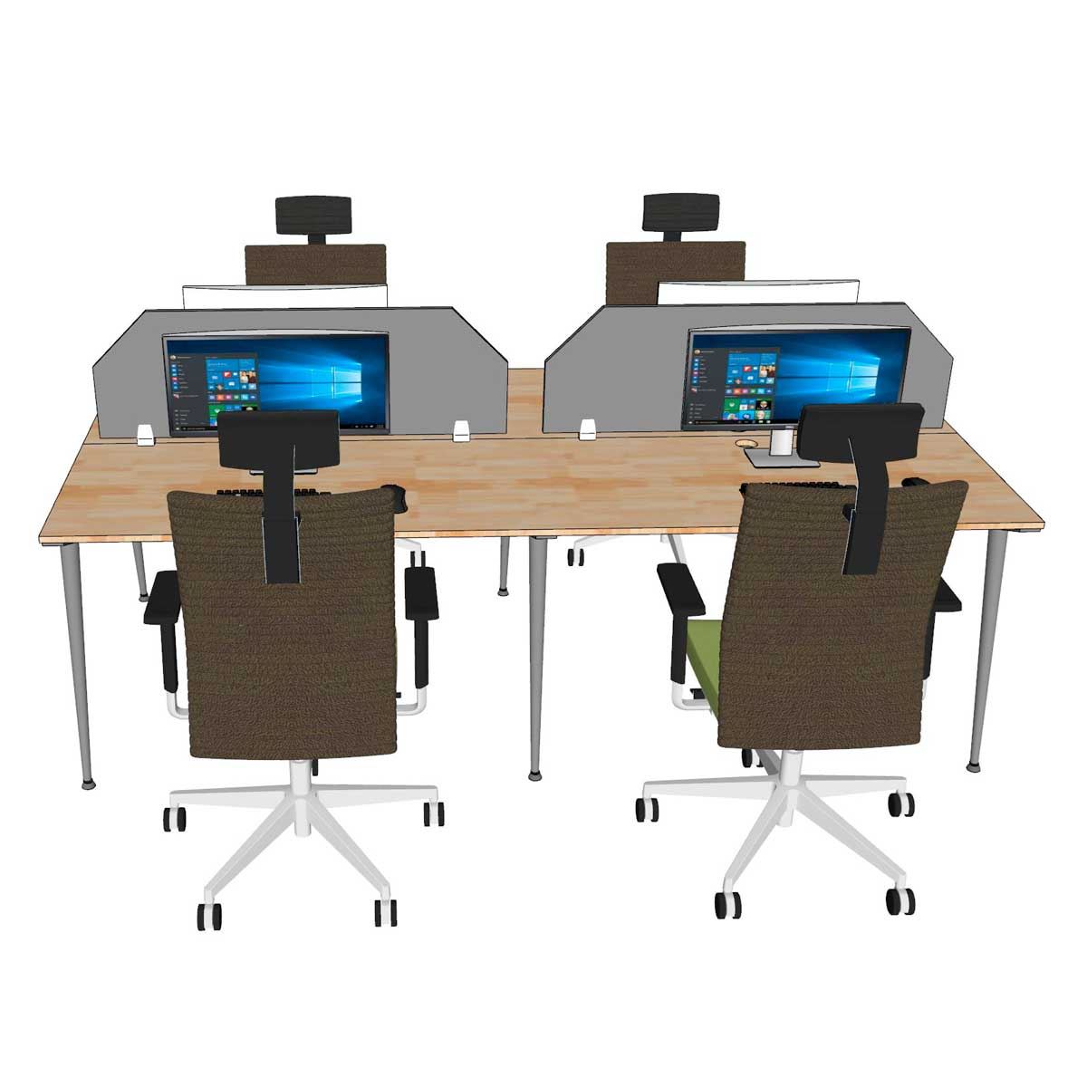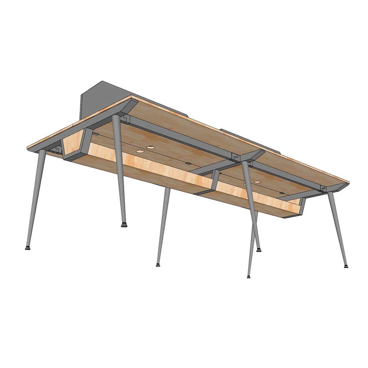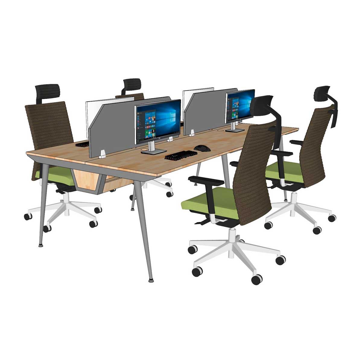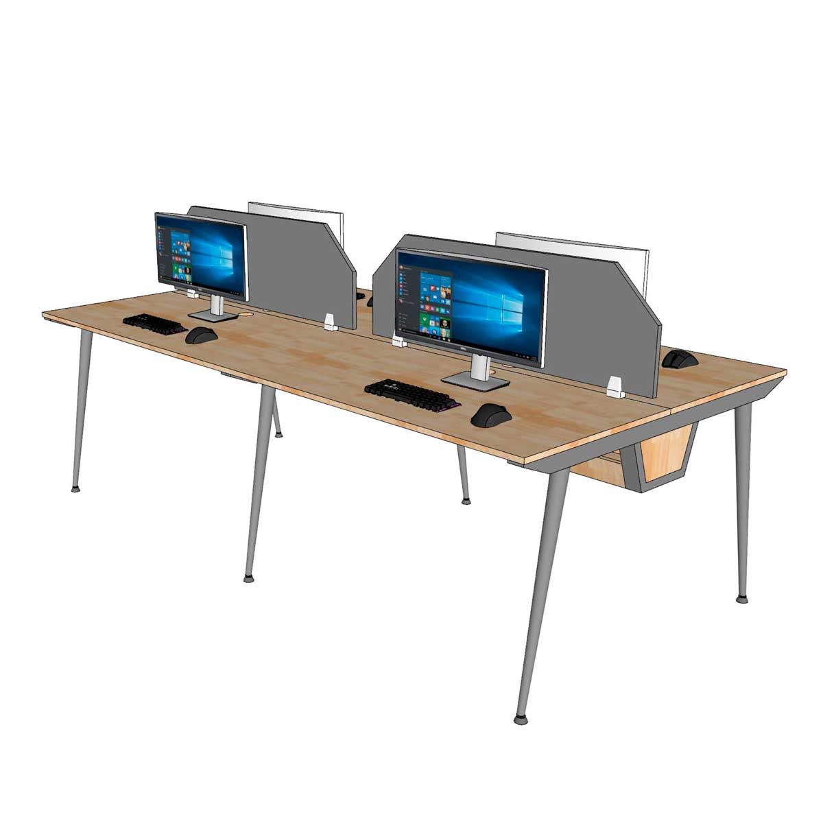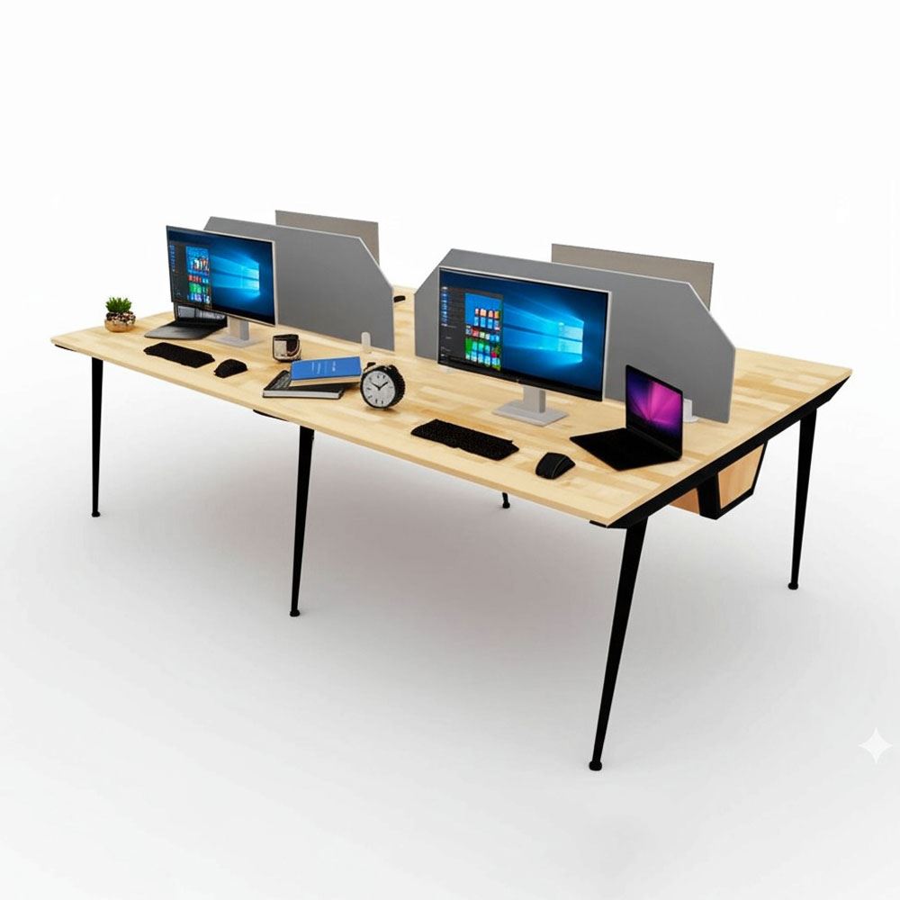 Bàn cụm làm việc 4 người HBCO064 với thiết kế chân sắt hệ CONE mang lại vẻ đẹp thanh lịch và hiện đại cho không gian làm việc. Đây là mẫu bàn văn phòng dành cho nhóm 4 người với nhu cầu sử dụng thiết bị điện tử, cần thêm một ngăn đi dây giúp không gian làm việc thêm gọn gàng. Điểm nổi bật của cụm bàn làm việc 4 người này là khay đi dây được tích hợp sẵn dưới mặt bàn. Khay đi dây giúp sắp xếp gọn gàng các dây điện, ổ cắm, tránh tình trạng lộn xộn, mất thẩm mỹ dưới gầm bàn. Nhờ vậy, không gian làm việc trở nên gọn gàng, sạch sẽ và chuyên nghiệp hơn.