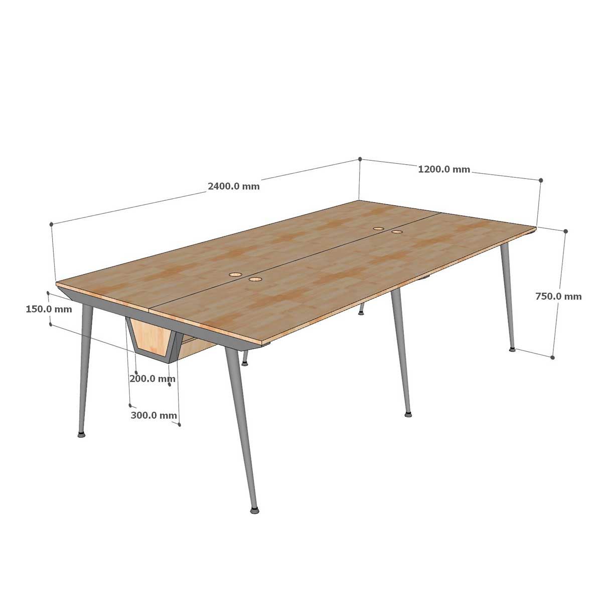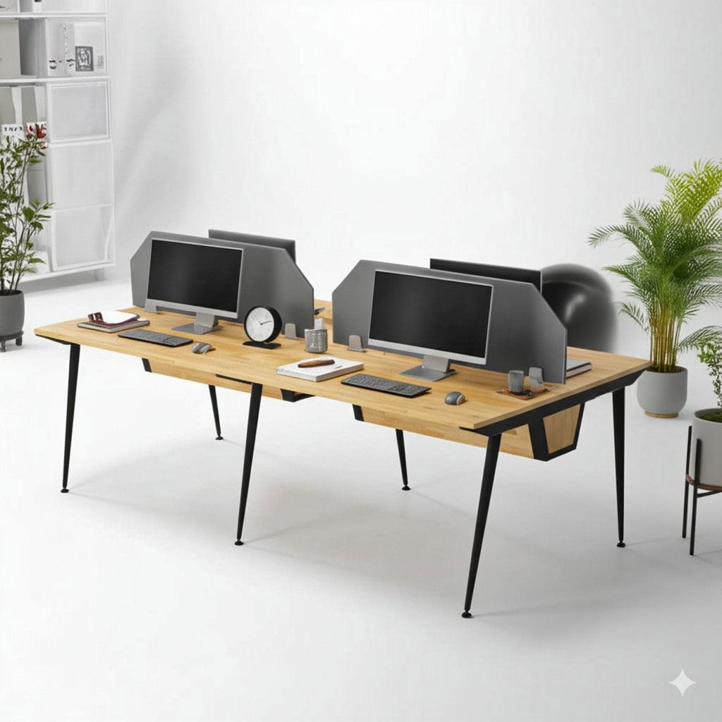 Mặt bàn được làm từ gỗ cao su AA, có vân gỗ đẹp mắt, mang đến cảm giác sang trọng và ấm áp. Bàn được sử dụng chất liệu gỗ cao su chuẩn AA dày 17mm PU màu gỗ tự nhiên luôn có một vẻ đẹp riêng, thân thiện với môi trường, đối với các văn phòng mở, văn phòng kết hợp với cây xanh thì việc sử dụng bàn gỗ cao su chân sắt kết hợp trở nên hoàn hảo. Gỗ được xử lý qua 4 công đoạn trước khi PU hoàn thiện cho bề mặt sản phẩm rất đẹp mắt, chống nước tuyệt đối. Khung chân sắt sơn tĩnh điện với cơ cấu ngàm lắp ráp dễ dàng, giúp vận chuyển dễ dàng và linh hoạt.