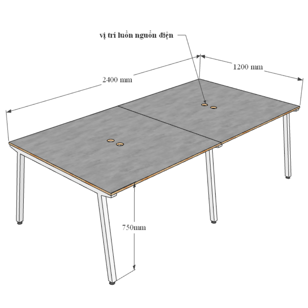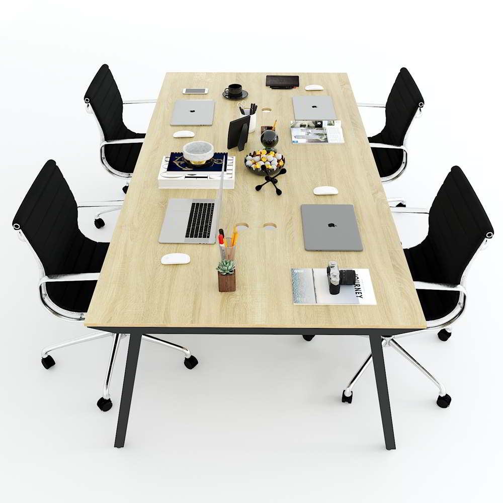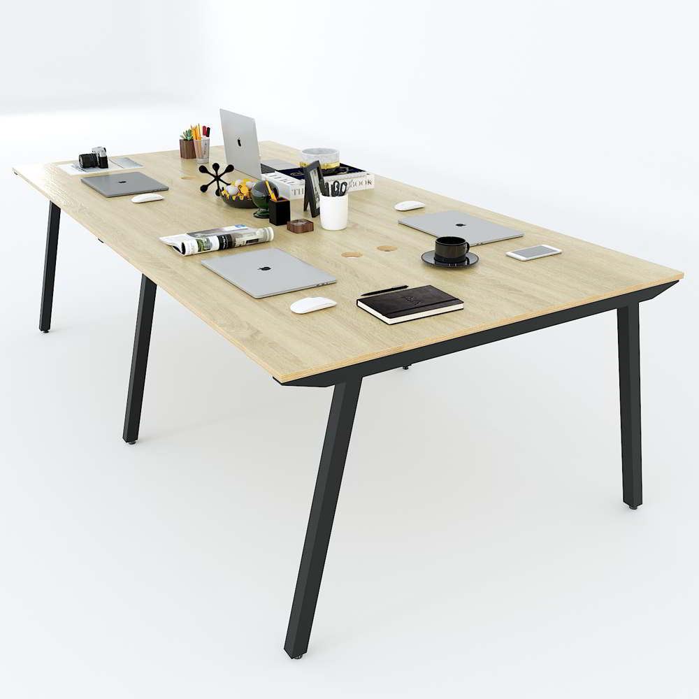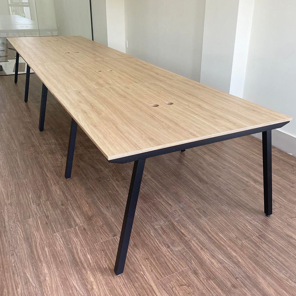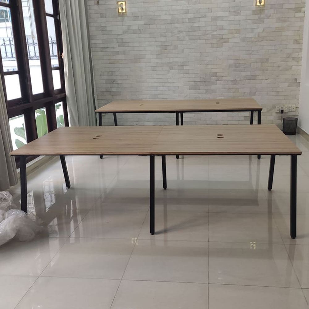 Bàn văn phòng cụm 4 chỗ ngồi 240x120cm gỗ Plywood chân sắt lắp ráp