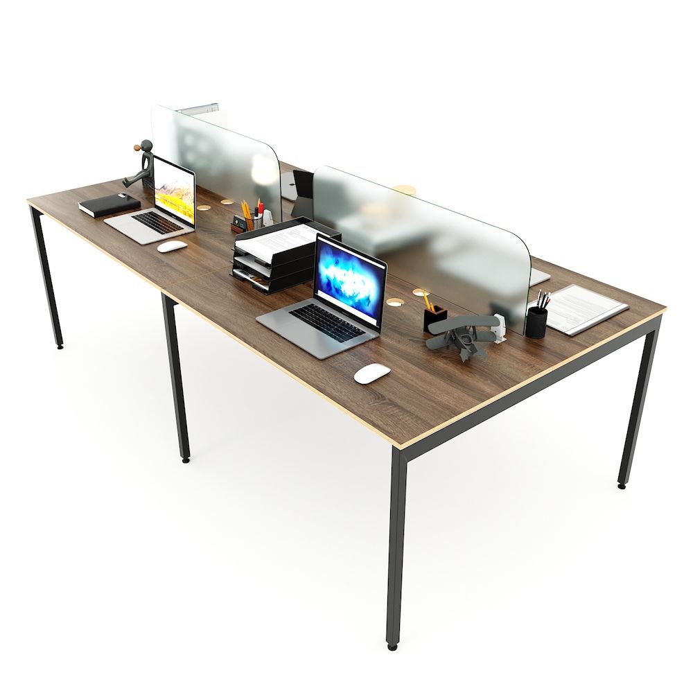Bàn cụm 4 240x120cm gỗ Plywood phủ melamin chân Slean HBSL016 với mặt bàn gỗ Plywood cốt gỗ tự nhiên bề mặt phủ melamin, bề mặt bàn được xử lý chống thấm nước và cong vênh, mặt bàn ngoài vân màu tối còn có thêm nhiều vân màu khác giúp bạn có sự lựa chọn phù hợp với không gian làm việc của mình. Kết hợp với mặt gỗ Plywood là hệ khung chân sắt hệ Slean thanh mảnh toát lên vẻ đẹp tinh tế, kiểu dáng tối giản không bao giờ lỗi thời. Bên cạnh đó hệ khung chân sắt cơ cấu lắp ráp ngàm thông minh và tiện lợi khi cần tháo lắp, di dời.