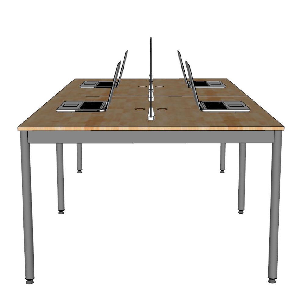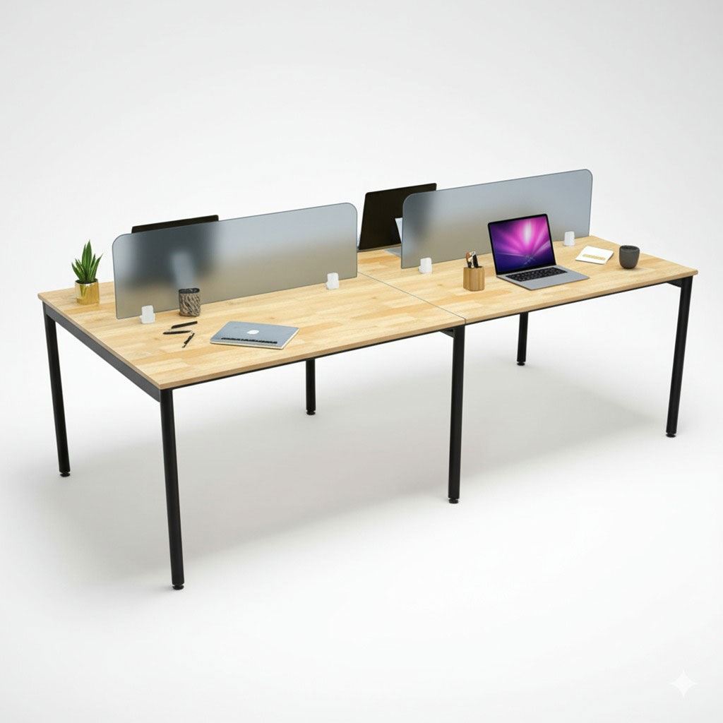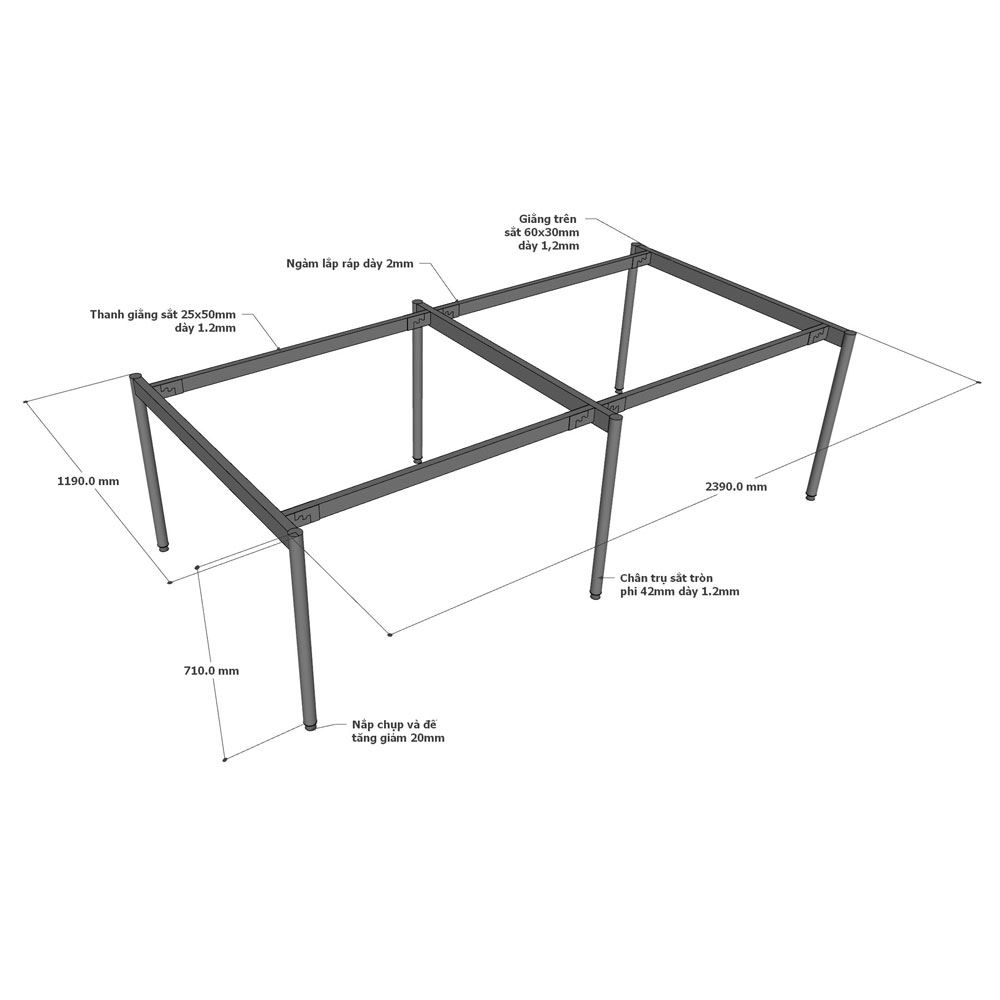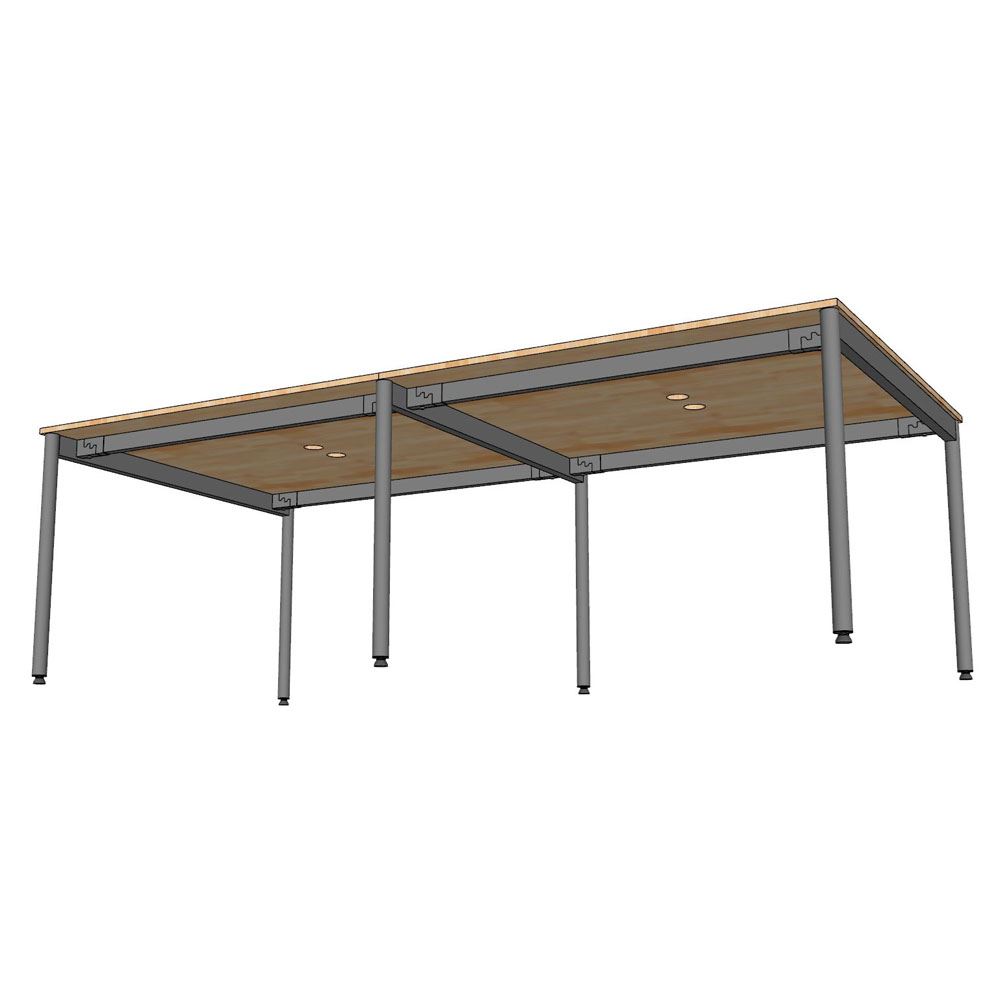 Bàn cụm 4 người 240x120cm hệ OMA II HBOM211 sử dụng gỗ cao su ghép tiêu chuẩn AA dày 17mm, được xử lý qua 4 công đoạn trước khi PU hoàn thiện cho bề mặt sản phẩm rất đẹp mắt, chống nước tuyệt đối. Khung chân sắt sơn tĩnh điện với cơ cấu ngàm lắp ráp đơn giản và linh hoạt.