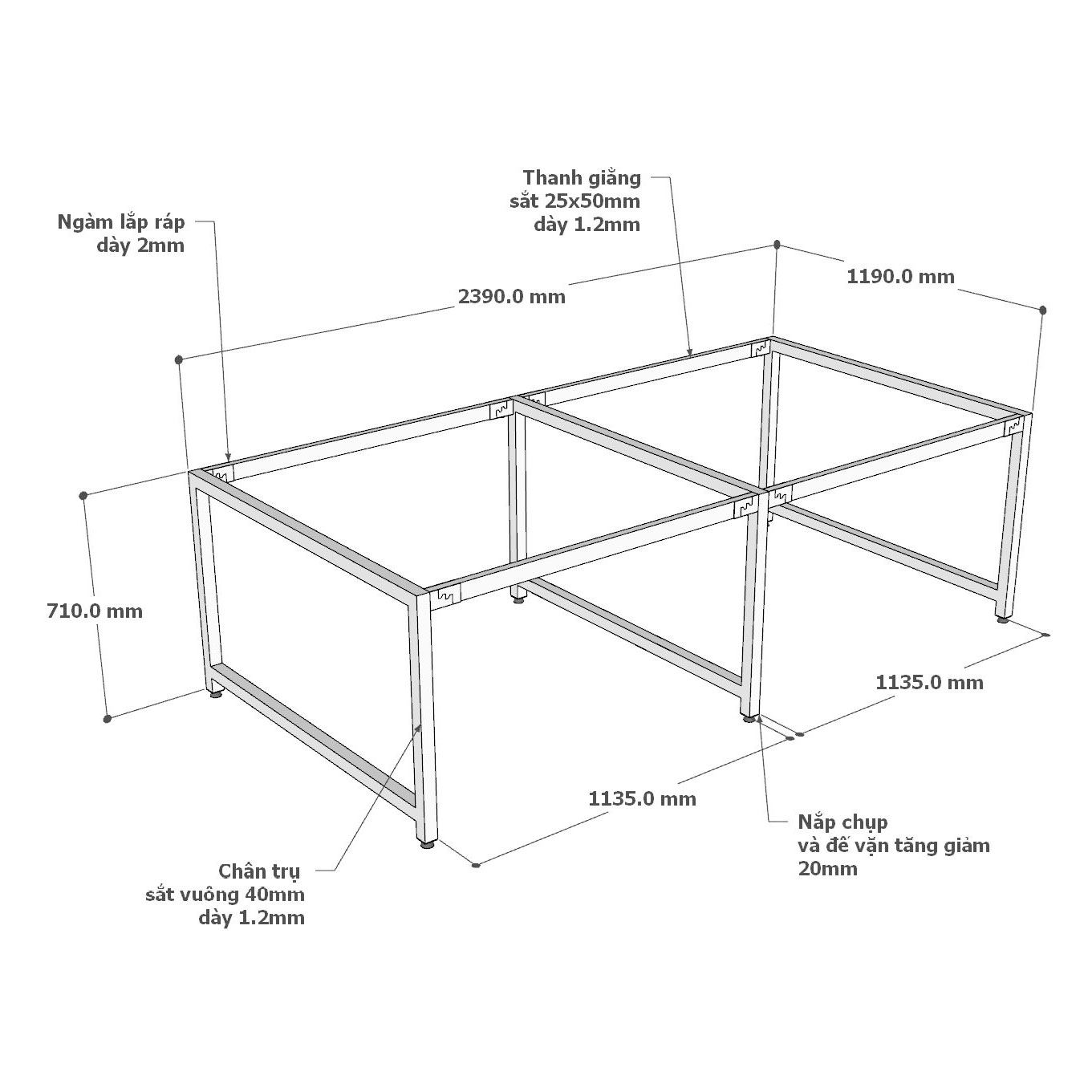 • Khung chân sắt sơn tĩnh điện