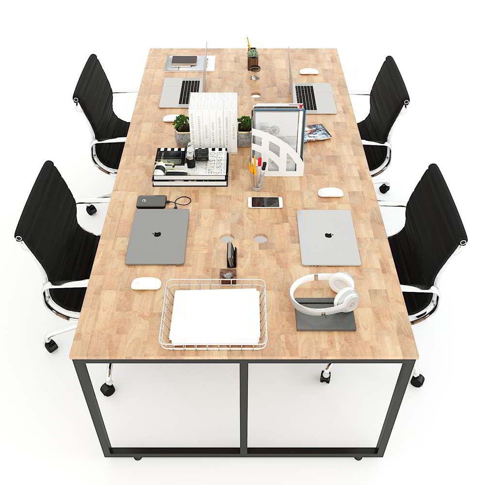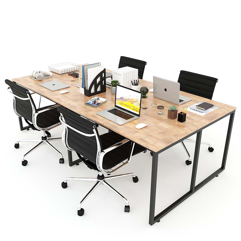 Bàn văn phòng cụm 4 người gỗ cao su chân sắt lắp ráp