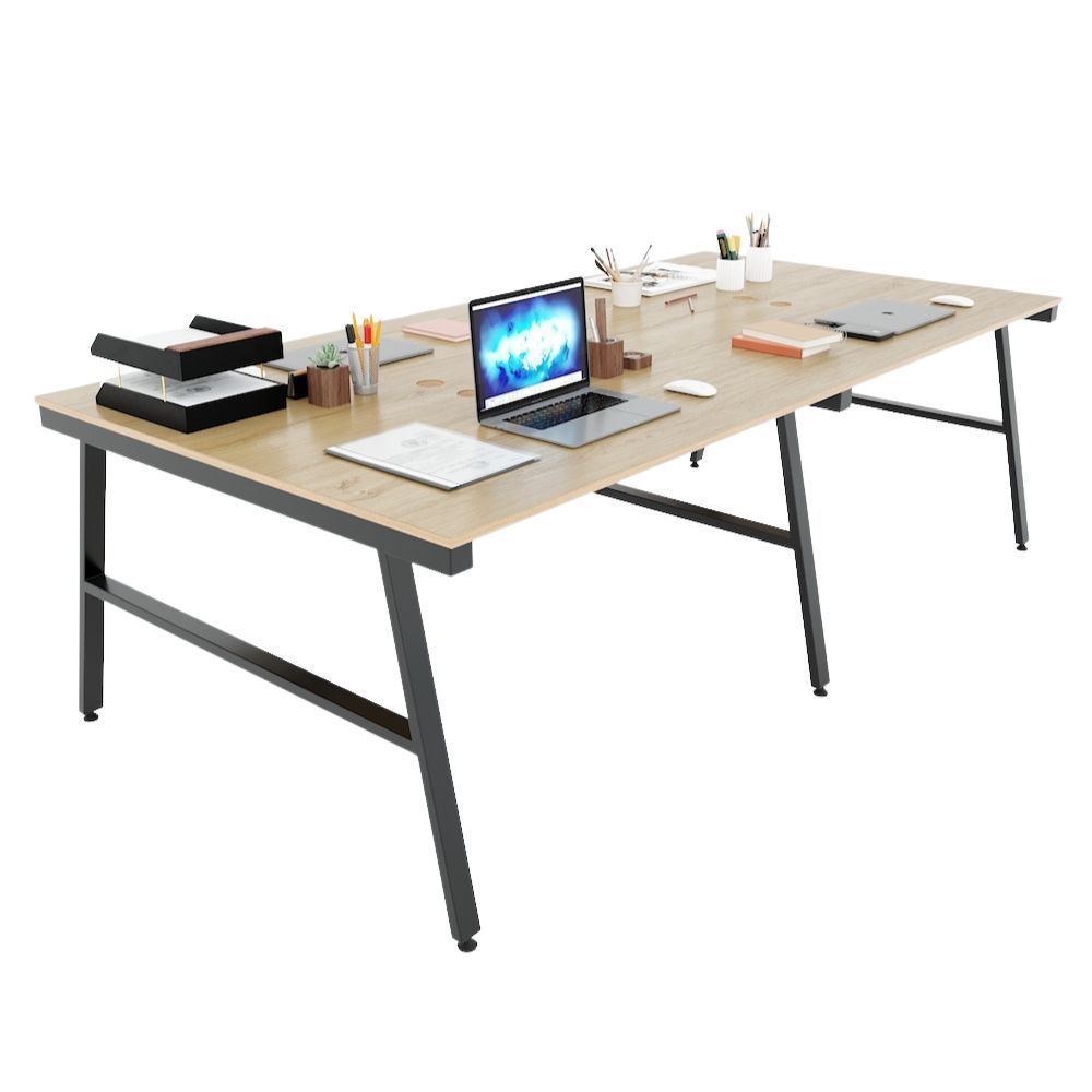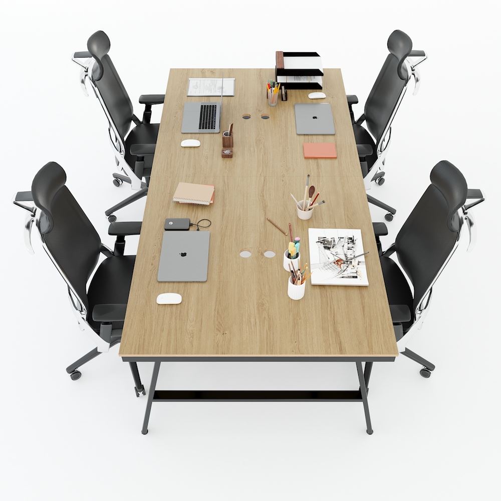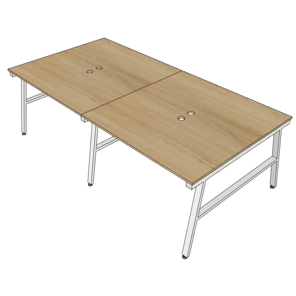 Bàn cụm 4 240x120cm gỗ Plywood phủ melamin chân sắt Aconcept HBAC041 với mặt bàn gỗ Plywood cốt gỗ tự nhiên bề mặt phủ melamin vân sồi đẹp mắt, bề mặt bàn được xử lý chống thấm nước và cong vênh, màu gỗ tự nhiên đẹp mắt mang đến sự thân thiện, gần gũi cho không gian làm việc của bạn. Kết hợp với mặt gỗ Plywood là hệ khung chân sắt Aconcept cơ cấu lắp ráp ngàm thông minh, tiện lợi nhưng vẫn đảm bảo độ chắc chắn, bề mặt sắt phủ lớp sơn tĩnh điện chất lượng cao bền bỉ theo thời gian Mặt bàn kích thước 240x120cm, bmỗi người sử dụng đủ 120x60cm theo tiêu chuẩn kích thước bàn làm việc hiện nay.