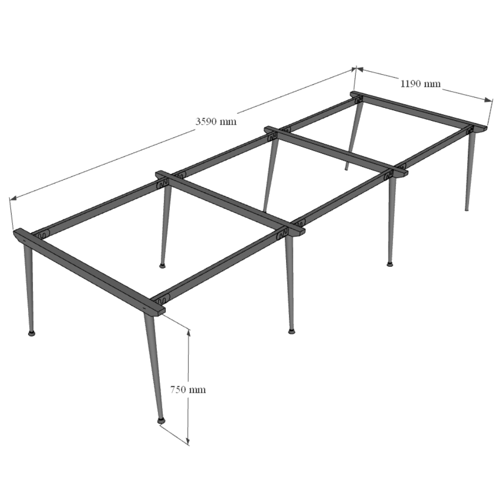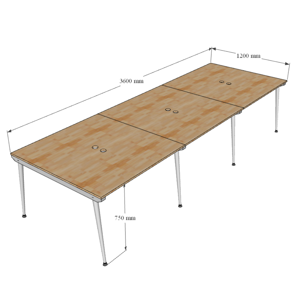 Bàn Cụm 6 Hệ CONE với kích thước mặt bàn 360x120cm và chiều cao tiêu chuẩn 75cm phù hợp với mọi loại ghế văn phòng phù hợp với nhiều không gian, bên cạnh đó chân bàn cơ cấu lắp ráp giúp bạn thuận tiện hơn trong việc tháo lắp, di dời nhưng vẫn đảm bảo độ chắc chắn.