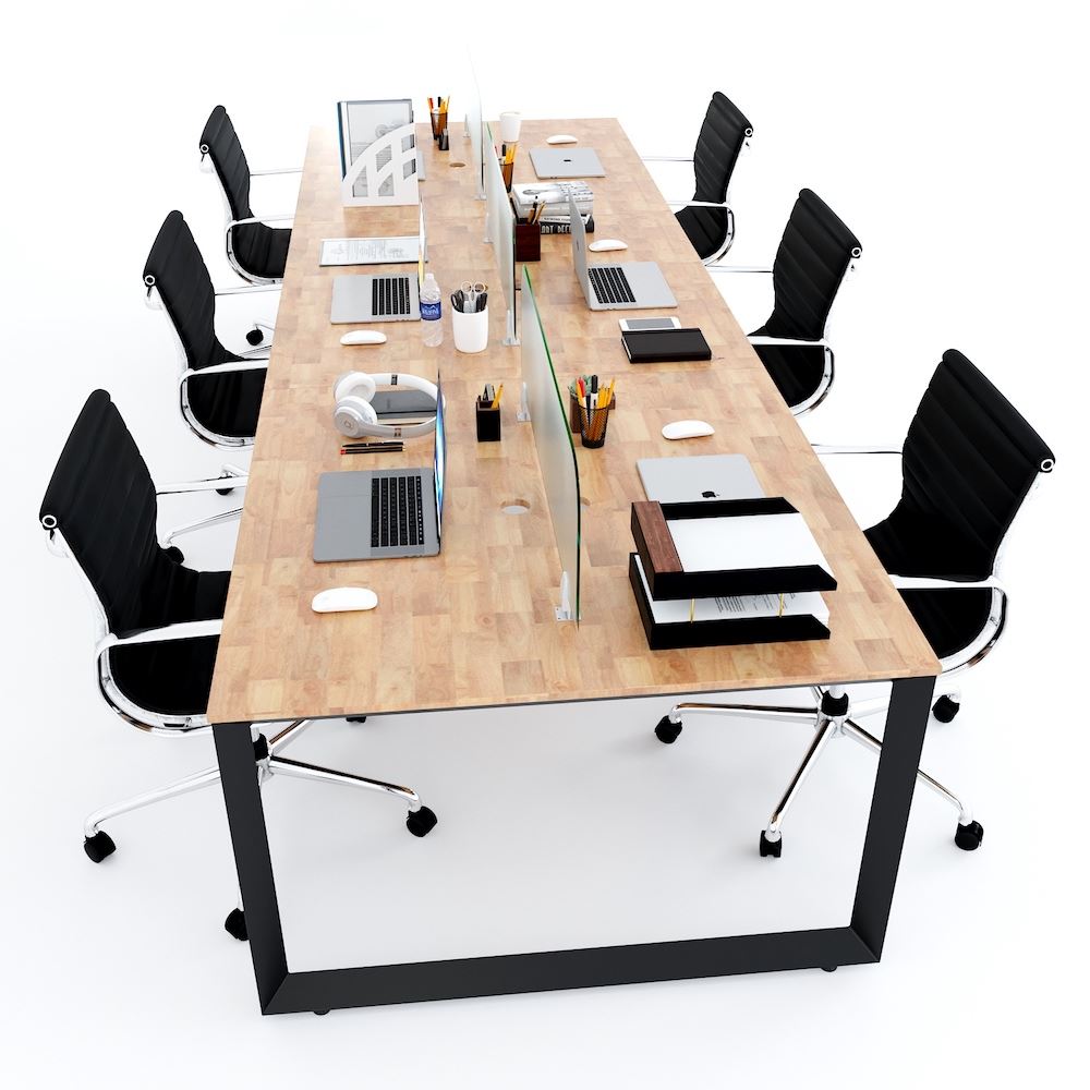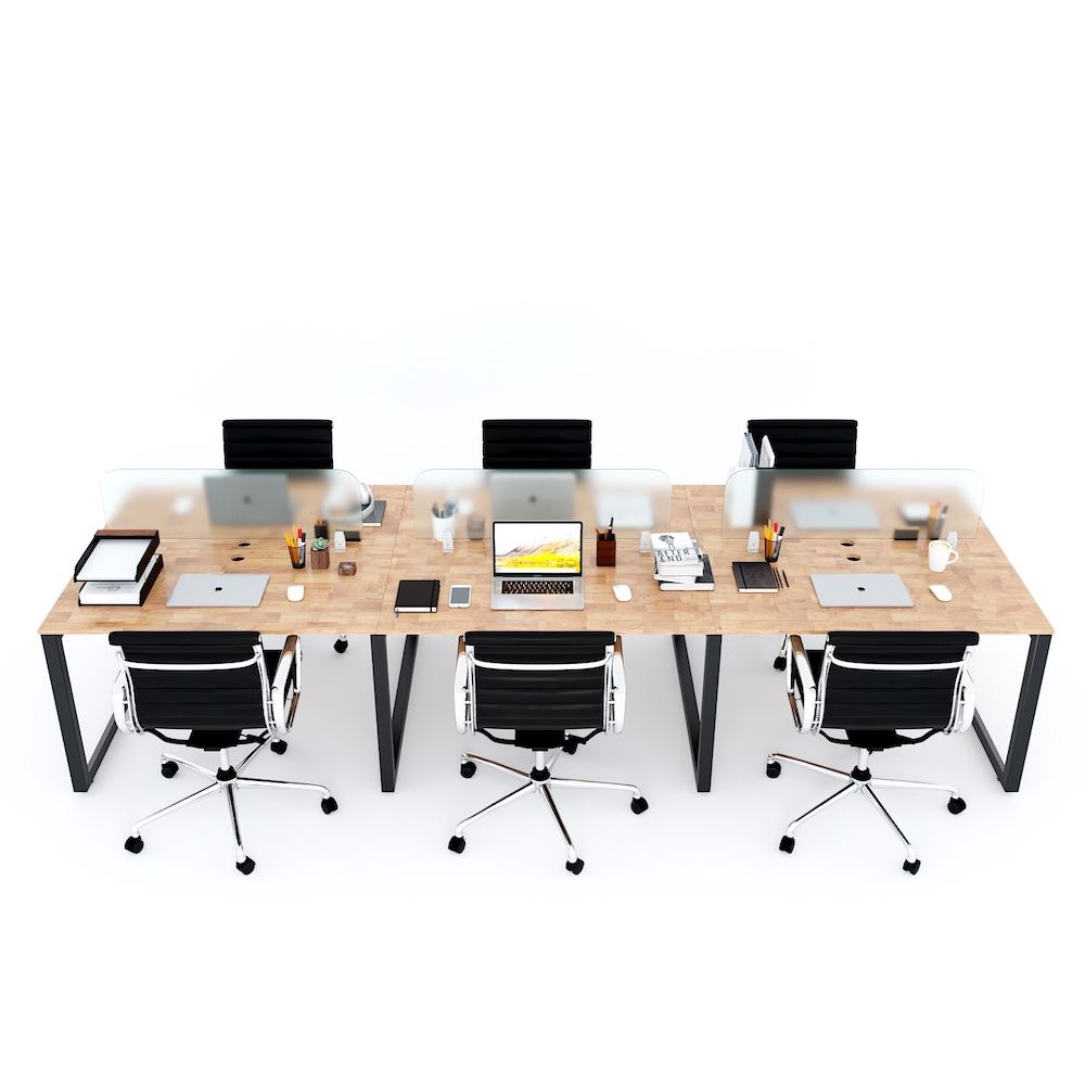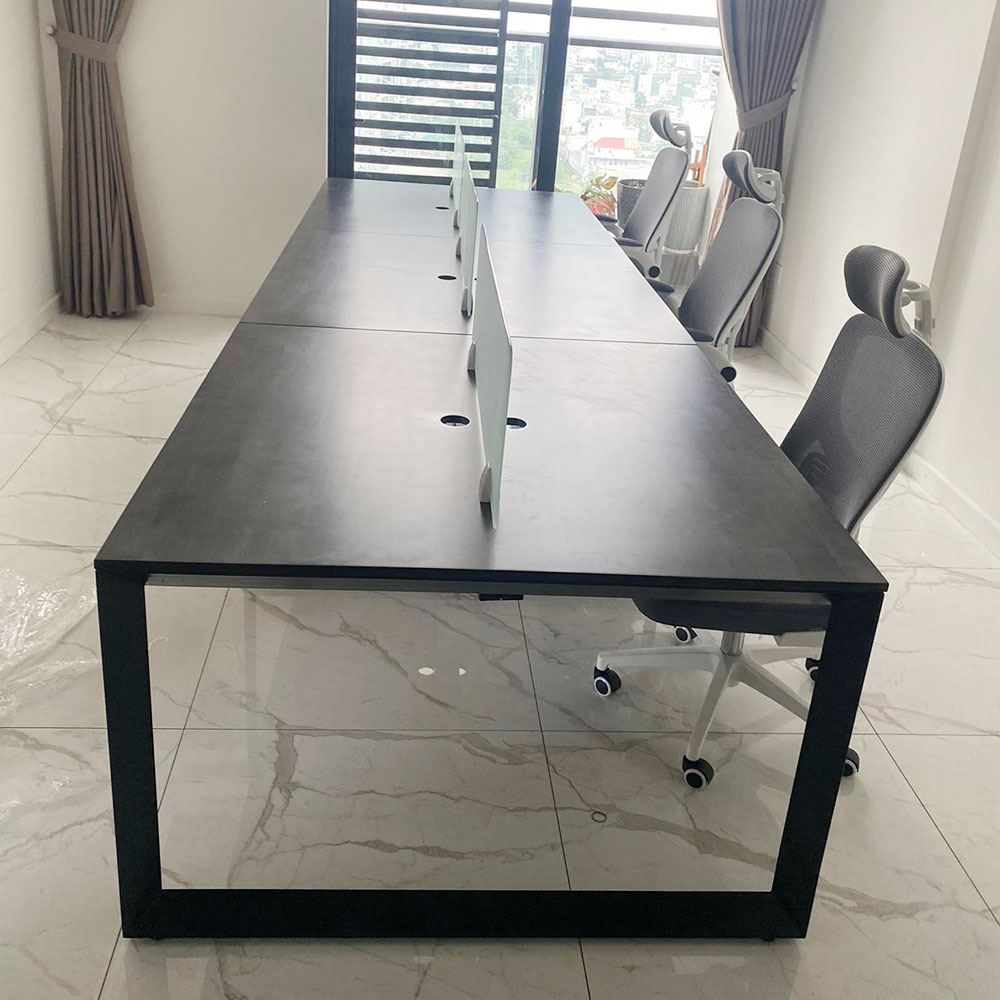 Bàn Cụm 6 Trian HBTA013 với chân bàn được làm từ sắt hình TAM GIÁC 55X55X78mm ( Sắt tam giác đều ) lắp ráp ngàm chắc chắn sơn tĩnh điện kết hợp với mặt bàn từ chất liệu gỗ cao su tiêu chuẩn AA dày 17mm được PU hoàn thiện với 5 màu sắc lựa chọn rất đẹp. Bàn Cụm 6 Trian với kích thước mặt bàn 120x360cm và chiều cao tiêu chuẩn 75cm phù hợp với mọi loại ghế văn phòng phù hợp với nhiều không gian.