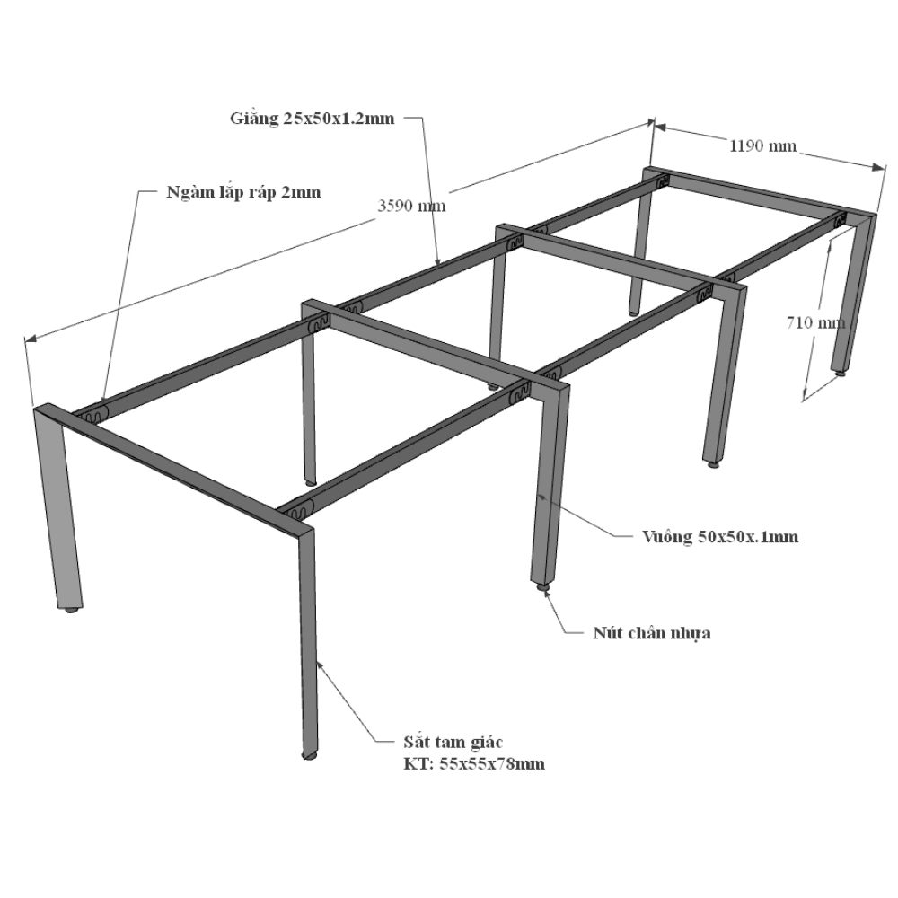 Chân bàn có giăng bàn sắt 25x50mm lắp ráp đỡ mặt bàn chắc chắn
