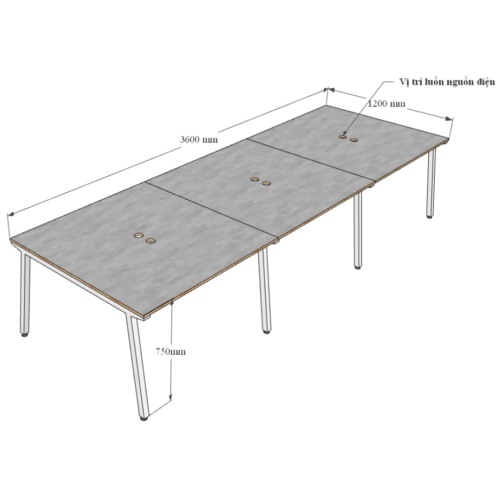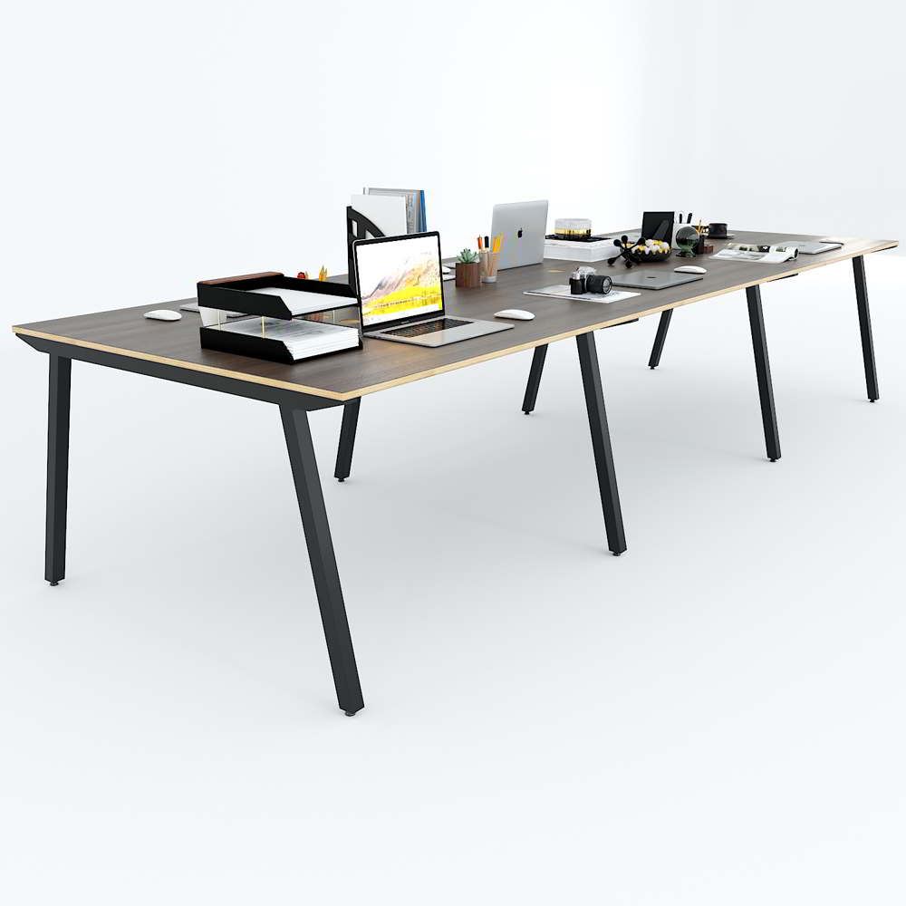 Bàn văn phòng cụm 6 chỗ ngồi 360x120cm gỗ Plywood chân sắt lắp ráp