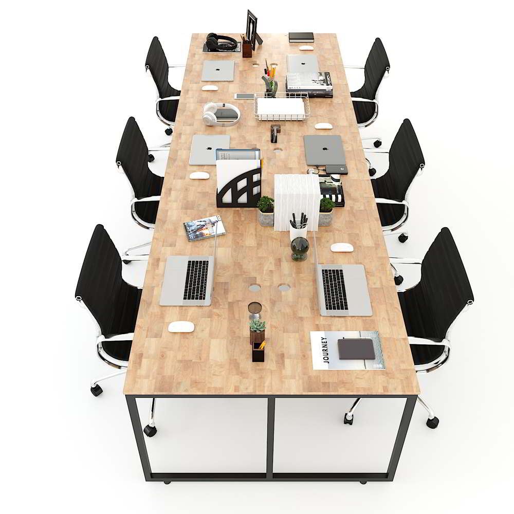 Bàn cụm 6 360x120cm hệ Minimal HBMN013 với chân bàn được làm từ sắt vuông 30x30mm mang đến vẻ đẹp tinh tế nhưng không kém phần chắc chắn, chân bàn liên kết với nhau theo cơ cấu lắp ráp ngàm 25x25mm giúp bạn dễ dàng tháo lắp, thuận tiện di dời vận chuyển. Mặt bàn gỗ cao su tiêu chuẩn AA dày 17mm được xử lý và hoàn thiện chống thấm nước, màu sắc đẹp mắt.