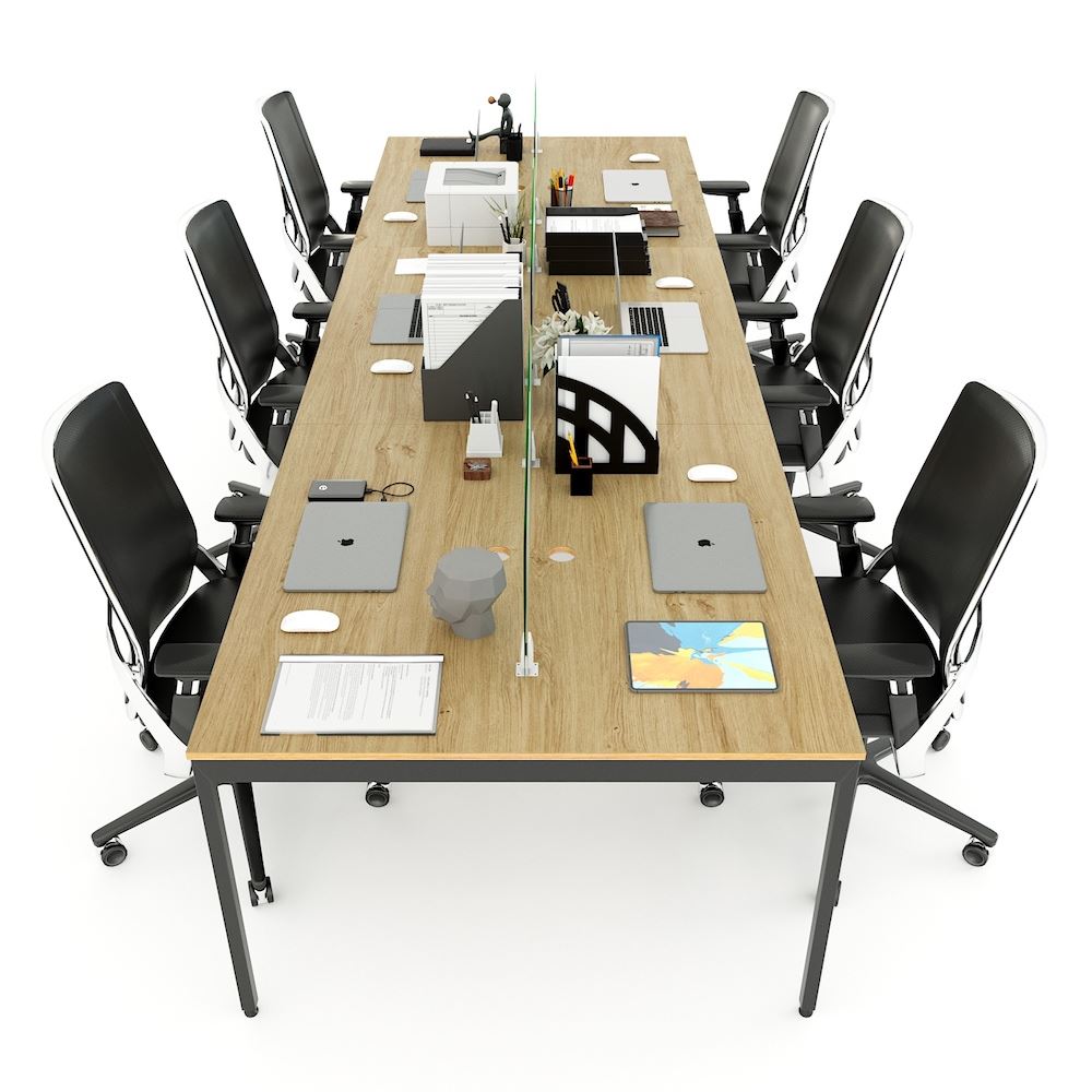 Bàn cum 6 mặt bàn gỗ Plywood phủ melamin vân sồi chân sắt hệ Slean kiểu chân có quỳ