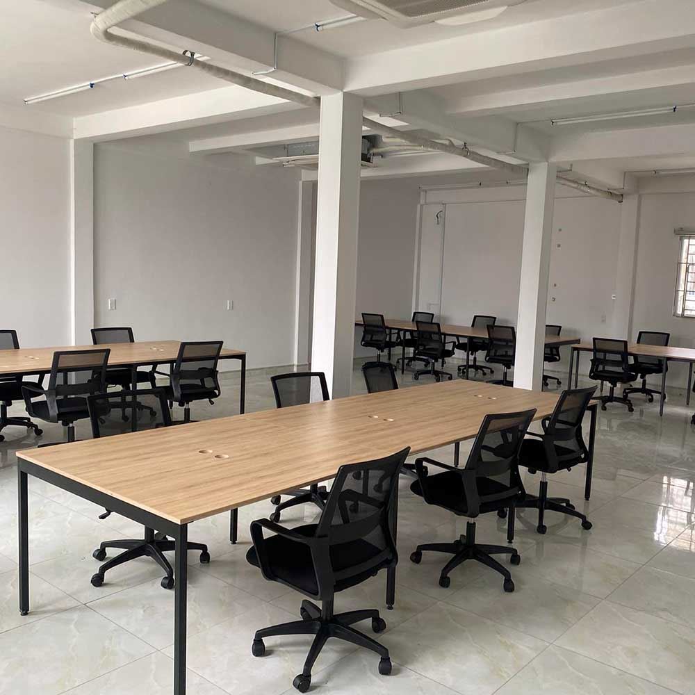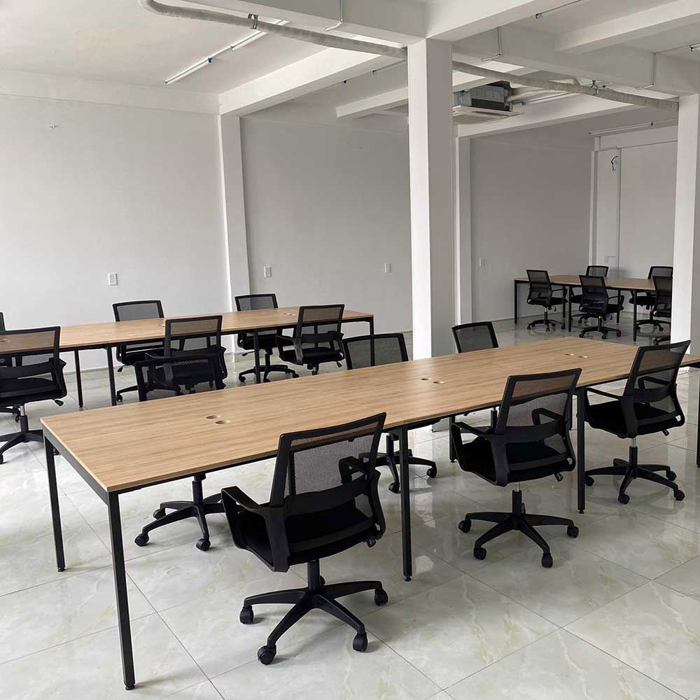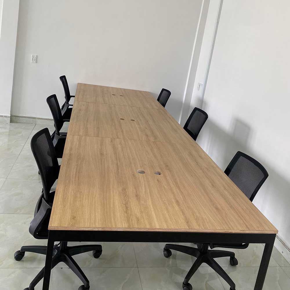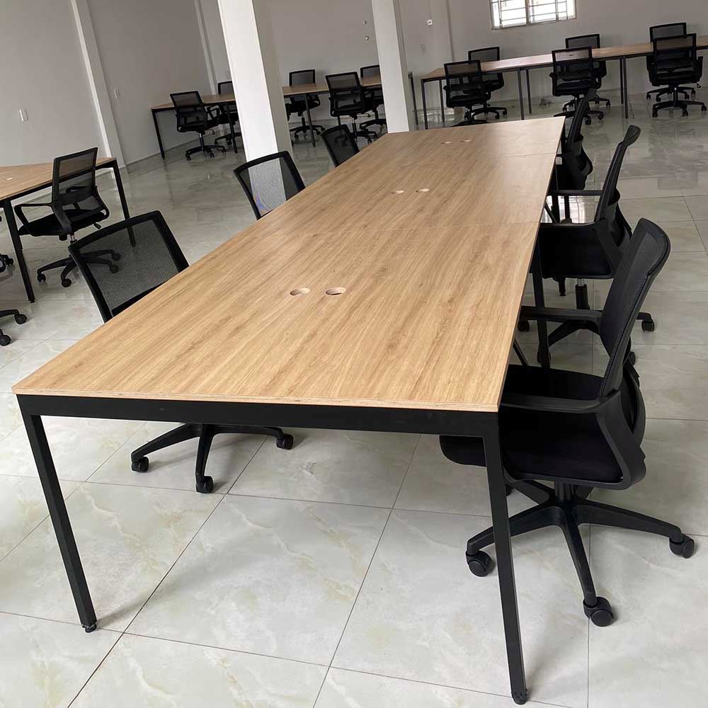 Bàn làm việc cụm 6 người ngồi kích thước 360x120cm mặt bàn gỗ Plywood phủ melamin vân sồi